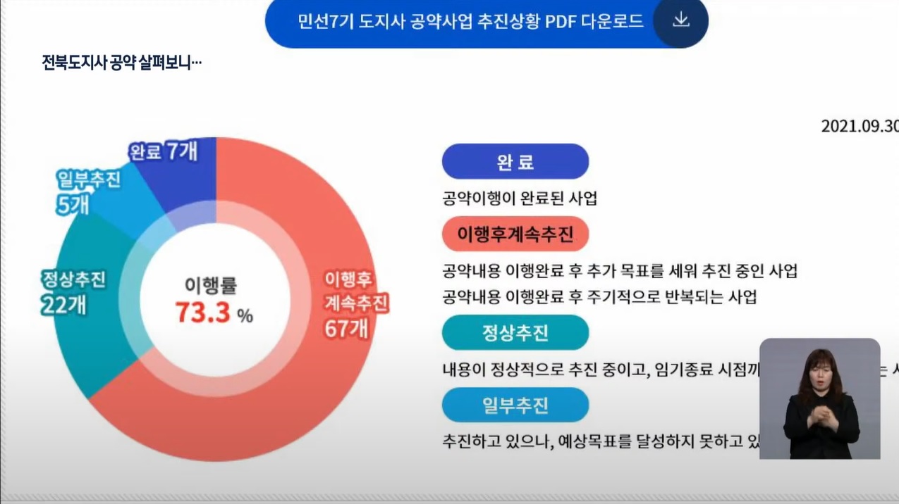 전라북도가 공약 이행률을 부풀렸다는 의혹을 받고 있습니다. 제대로 진행되지 못하고 있는 사업을 ‘정상 추진’으로 분류했다는 것인데요, 이행률을 높이기 위해서는 무엇보다 시민들과 함께 만드는 공약이 필요하다는 주장이 나옵니다. 2022년 대선과 지방선거를 앞둔 상황에서 대선 공약뿐만 아니라 민선7기 전북 지방자치단체들의 공약 또한 점검이 필요해 보입니다.