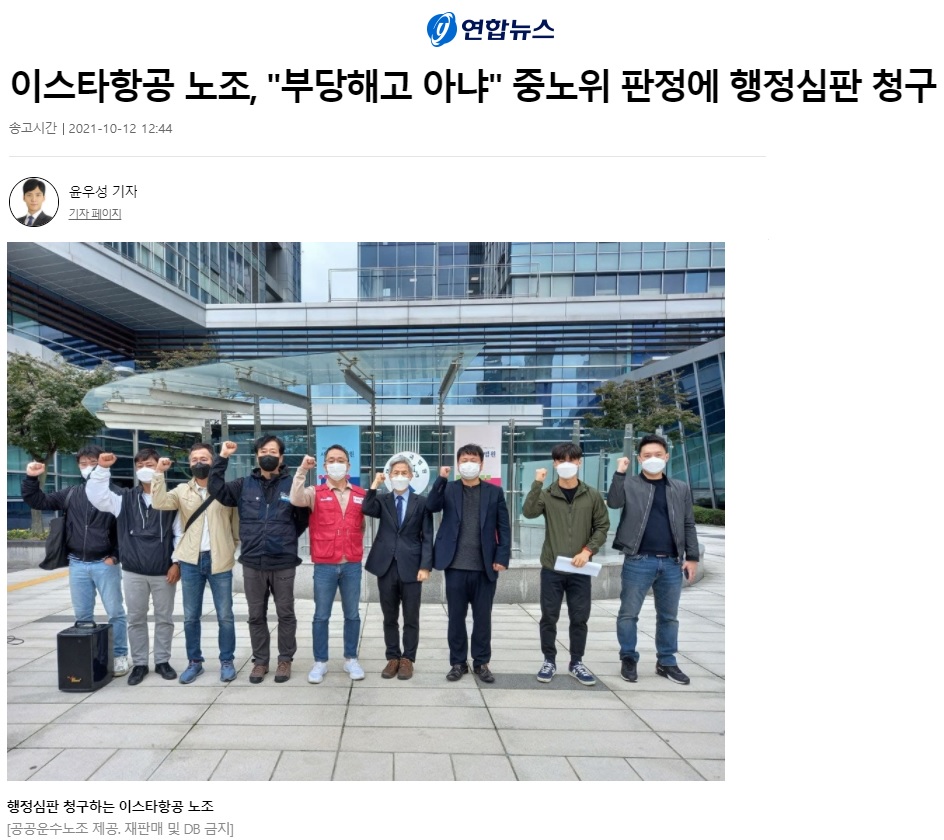 이에 이스타항공조종사노조 측은 지난 10월 행정심판을 청구한 상황인데요, 이처럼 부당해고 여부를 두고 행정심판이 진행 중인 상황에서, 해고된 노동자들에 대한 지역 언론들의 관심도 필요해 보입니다.
