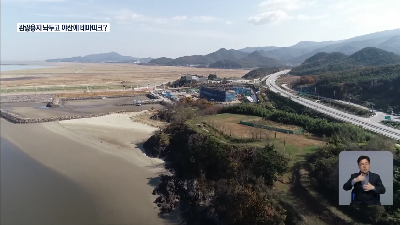 예정 부지에 해안가 야산이 포함되어 있는데, KBS전주총국은 이 야산이 새만금 이용계획에 포함되어 있지 않다고 보도했습니다. ‘명소화용지’라고 이름 붙여 억지로 사업 예정지에 포함시켰다는 겁니다.