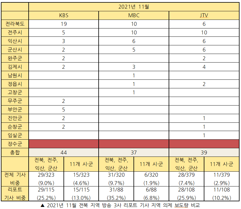 <2021년 11월 전북 방송 3사 시군 의제 보도 실태 보고서>