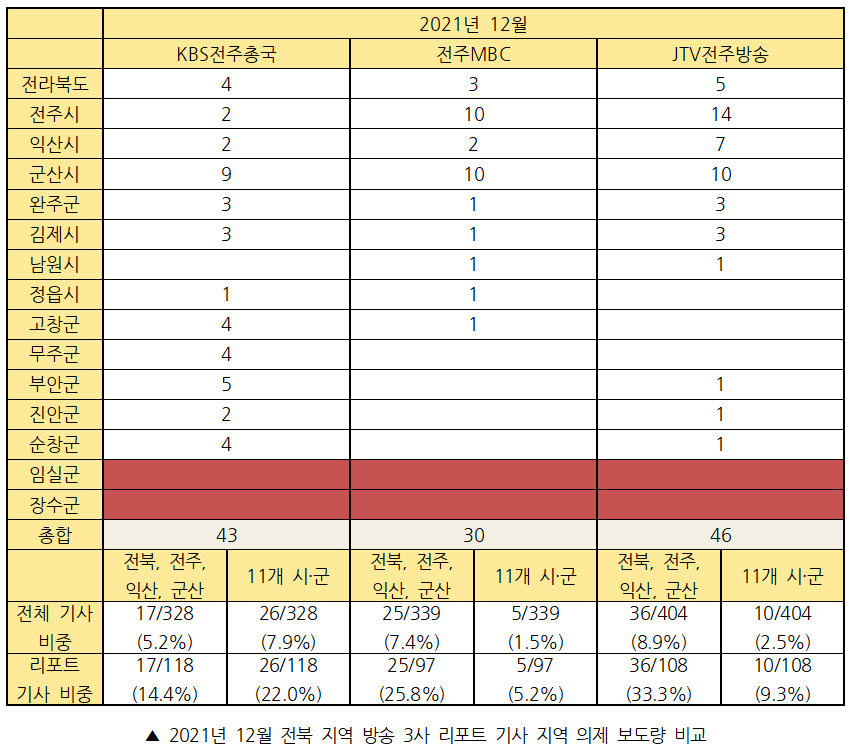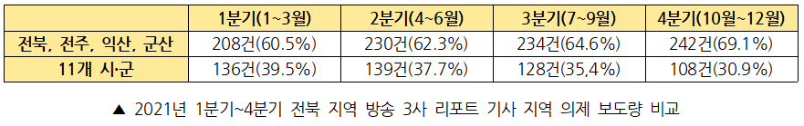 <2021년 4분기 전북 방송 3사 시군 의제 보도 실태 보고서>