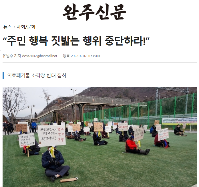 [완주신문] “의료폐기물 소각장 결사반대”(2021/6/2, 유범수)