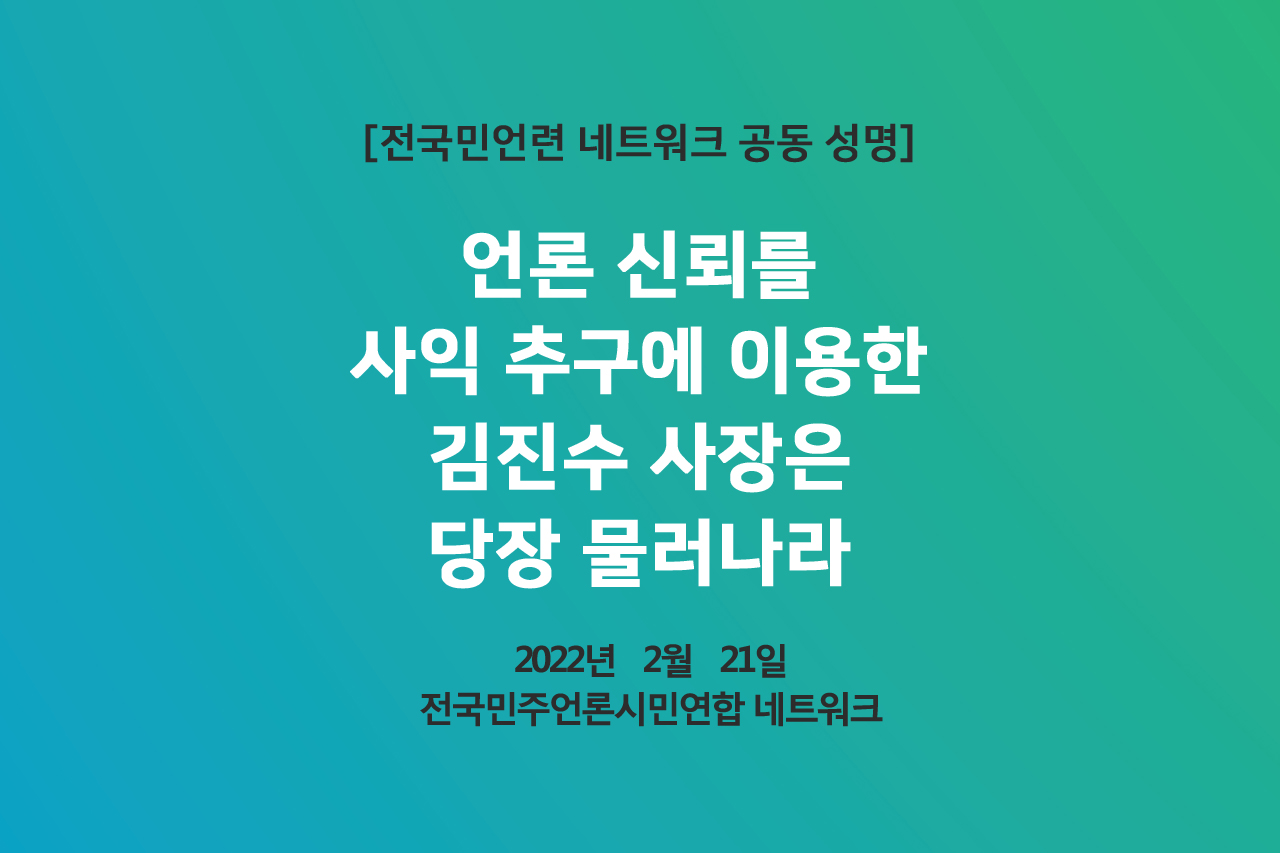 언론 신뢰를 사익 추구에 이용한 김진수 사장은 당장 물러나라