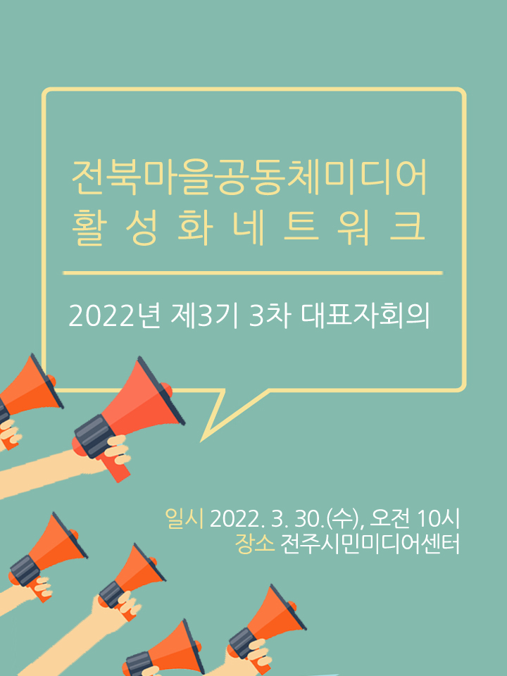2022년 3월 30일(수) 오전 10시부터, 전주시민미디어센터 영시미 회의실에서 전북마을공동체미디어활성화네트워크 제3기 3차 대표자회의를 진행하였습니다.