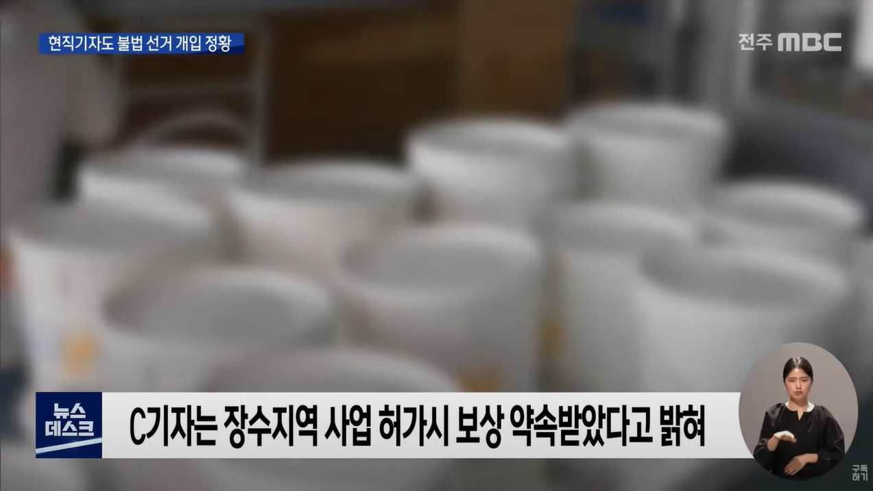 | 작년 10월 하순 도내 언론사 정치담당 C 기자가 지인과 나눈 대화. 폐기물 사업을 원했던 사장 D 씨가 유력 장수군수 후보에게 거액을 줬다는 얘기가 등장합니다. [C기자 대화] "이쪽 사장(D 씨)은 ***에게 계속 돈을 댔어, 그냥. 꾸준히. 안되더라도 그냥 몇천만 원씩 주고 몇천만 원씩 주고 이렇게 해가지고 보니까 얼추 그게 한 3억이 됐어, 3년 동안 준 돈이." 그리고 그 사이 이중선 예비후보에게 처음 접근했던 A 씨가 또 다른 장수군수 후보에게 접근해 수천만 원을 건넸다는 말도 담겨 있습니다. C 기자는 이 같은 작업을 통해 선거 이후 폐기물 처리장 허가만 나면 업체로부터 A 씨와 자신이 보상을 약속받았다는 말도 합니다. - 전주MBC <선거조직‧자금 미끼로 인사권‧인허가권 요구> 기사 중 |