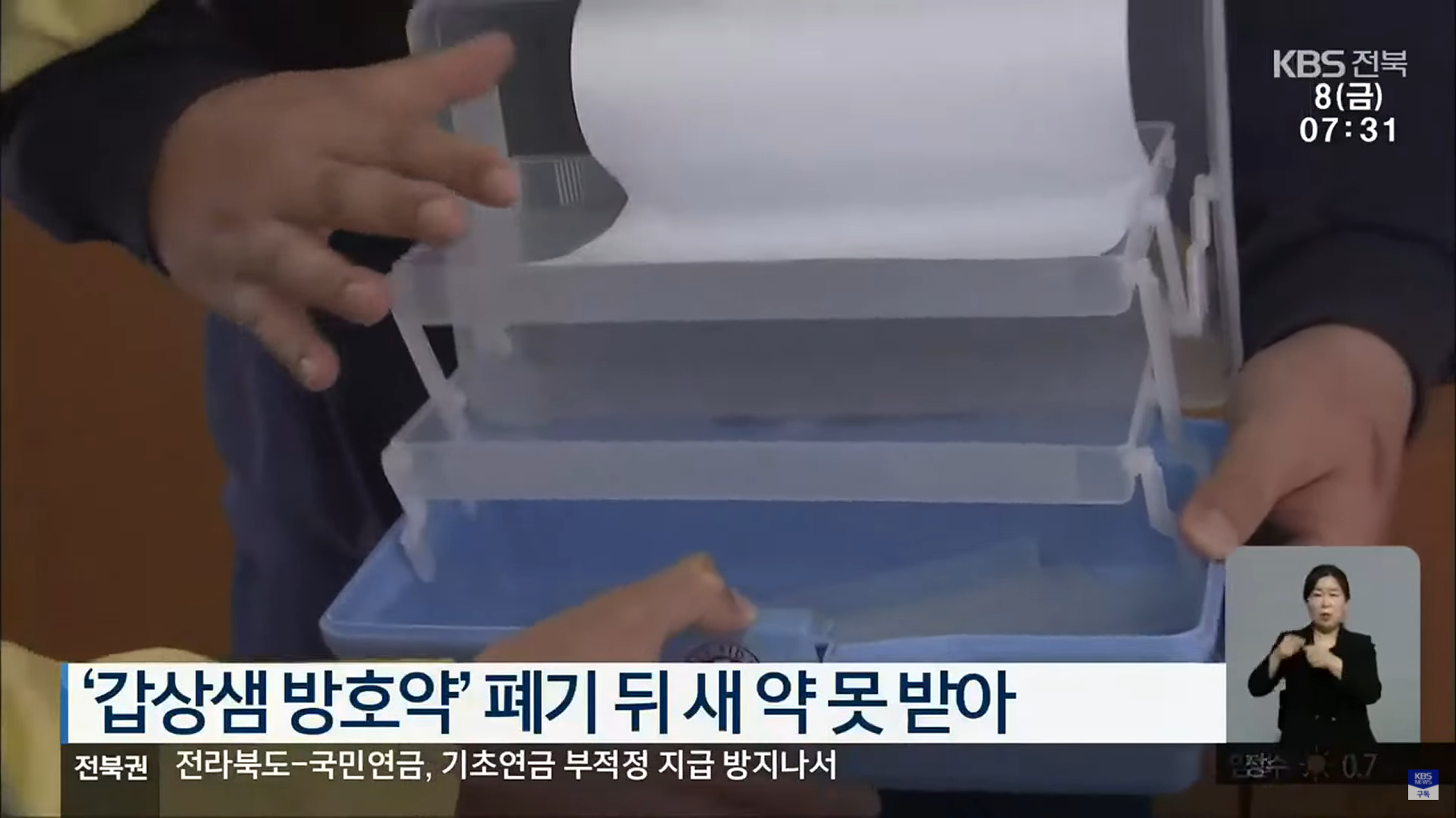 그런데 지방자치단체의 감상샘 방호약 비축량이 부족하다는 사실이 KBS전주총국의 보도로 드러났습니다. 유효기간이 지나 폐기한 후 담당 기관인 원자력의학원으로부터 새로운 약을 받지 못했기 때문입니다. 전북뿐만 아니라 전국의 관련 지방자치단체 대부분 방호약 부족 문제를 겪고 있었습니다.
