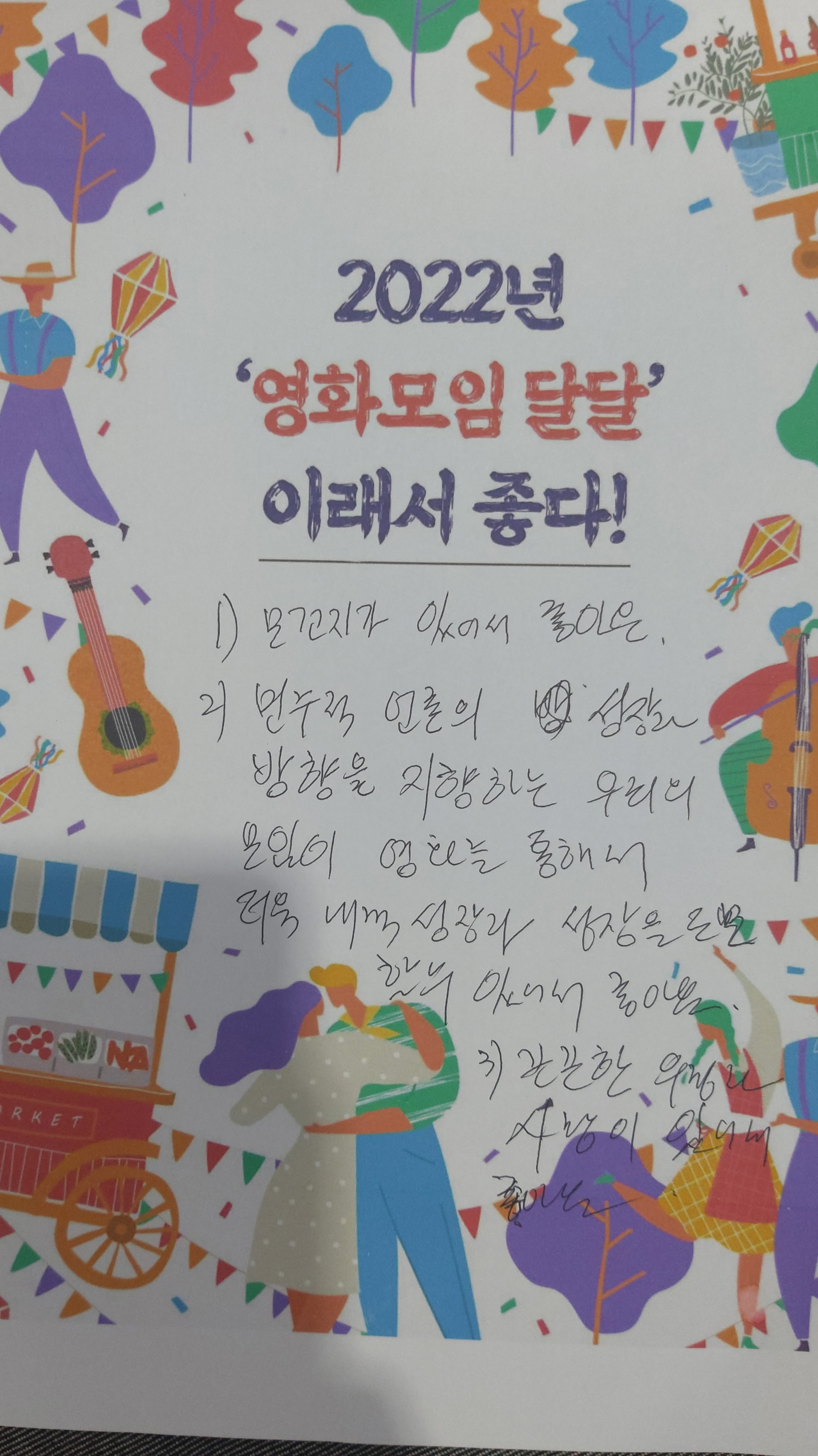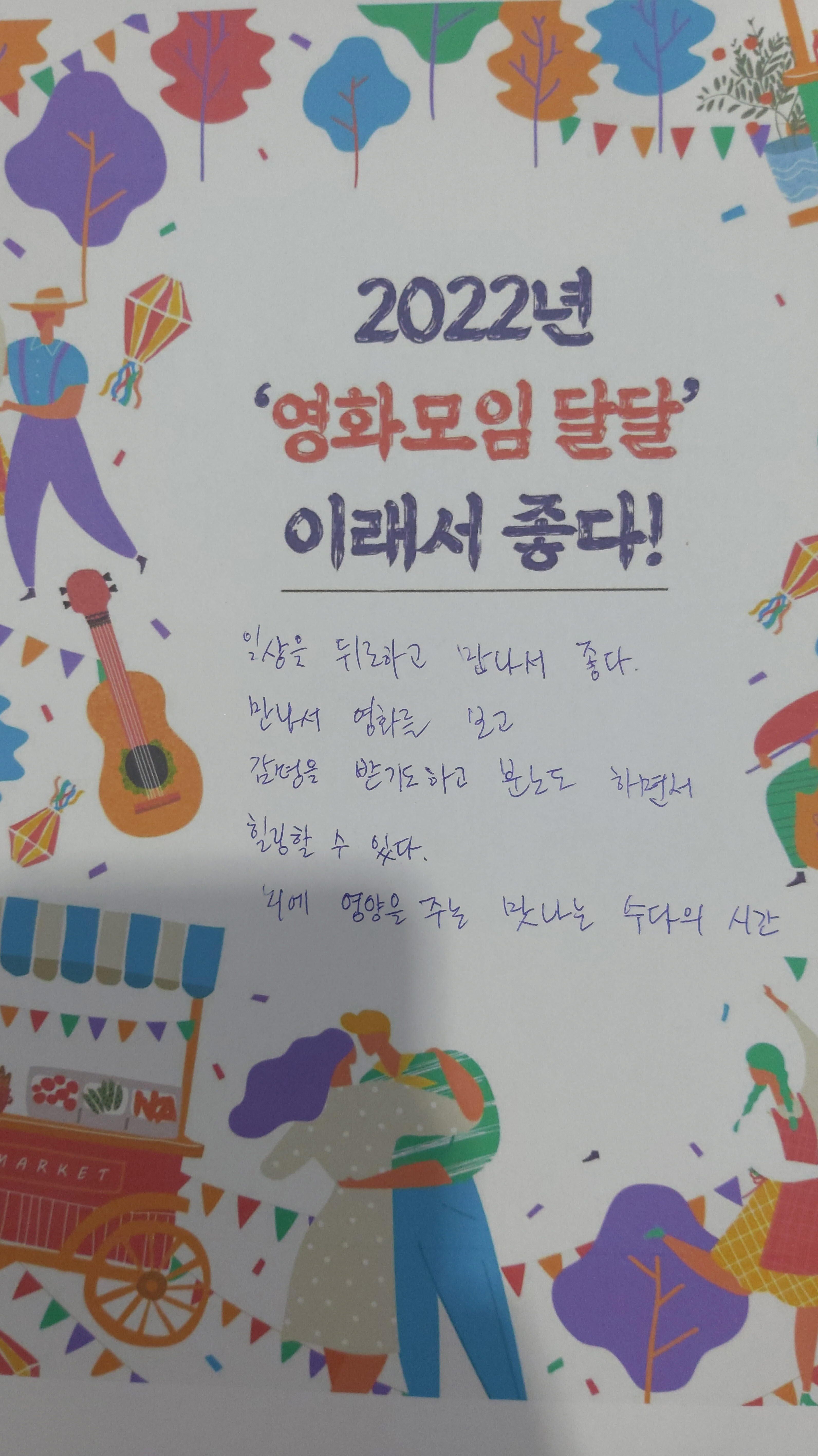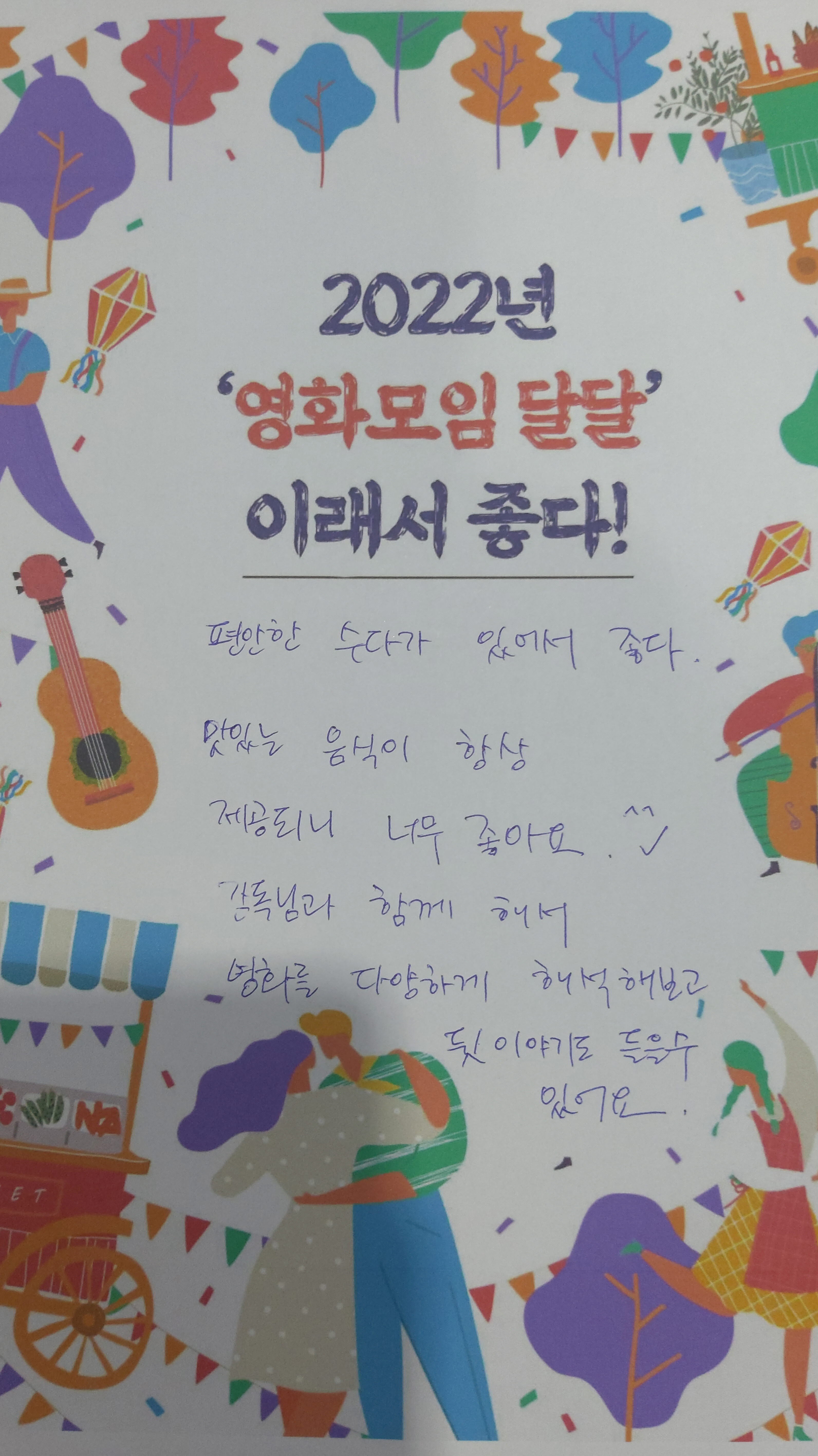 마지막으로 각자 2022년 영화모임 달달이 좋은 이유를 공유하고, 가장 좋은 평가를 받은 권경화 회원님께 책을 선물해 드렸습니다.^^