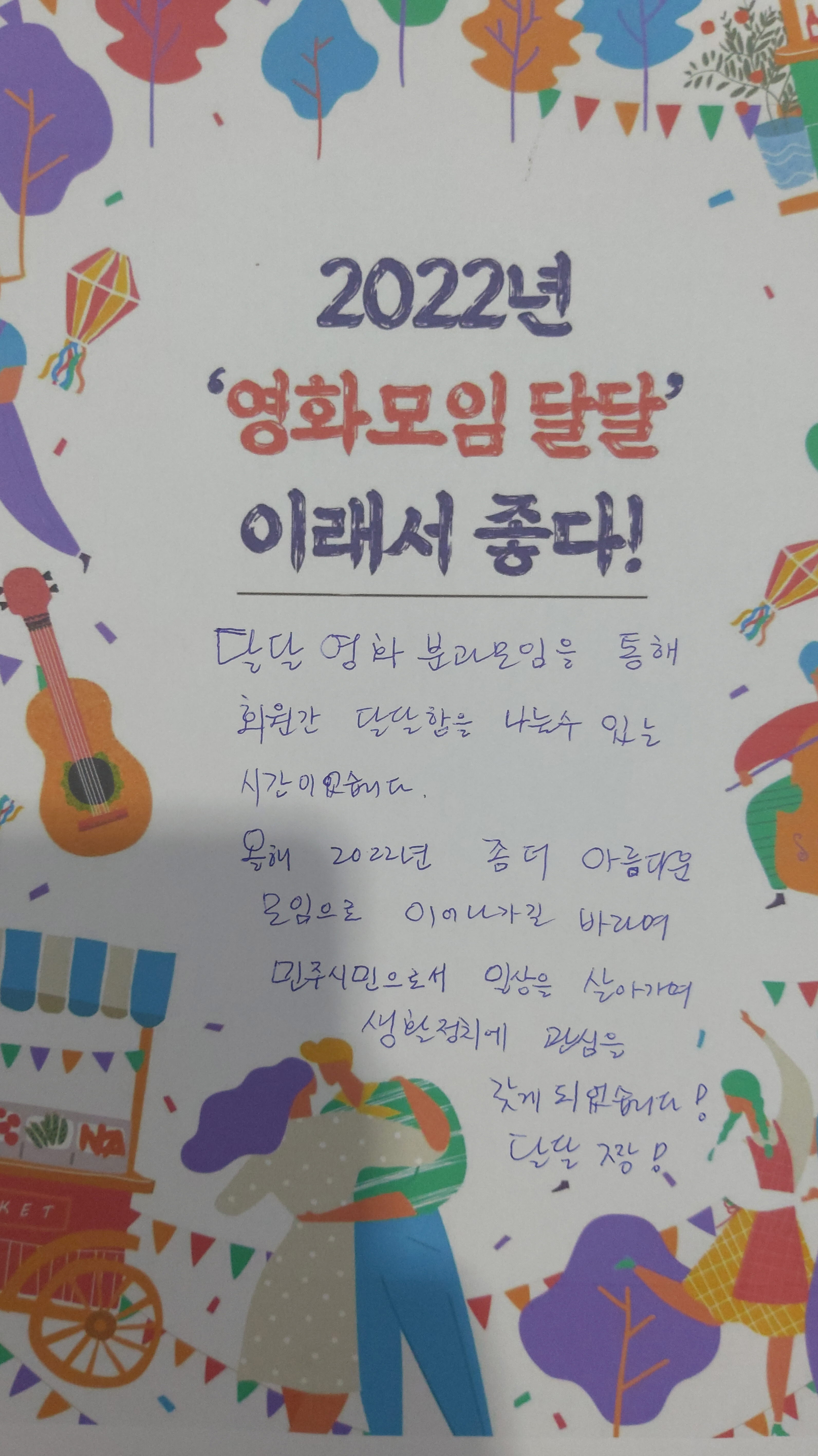 영화모임 달달은 언제나 열려있습니다. 많은 관심과 참여 부탁드립니다.