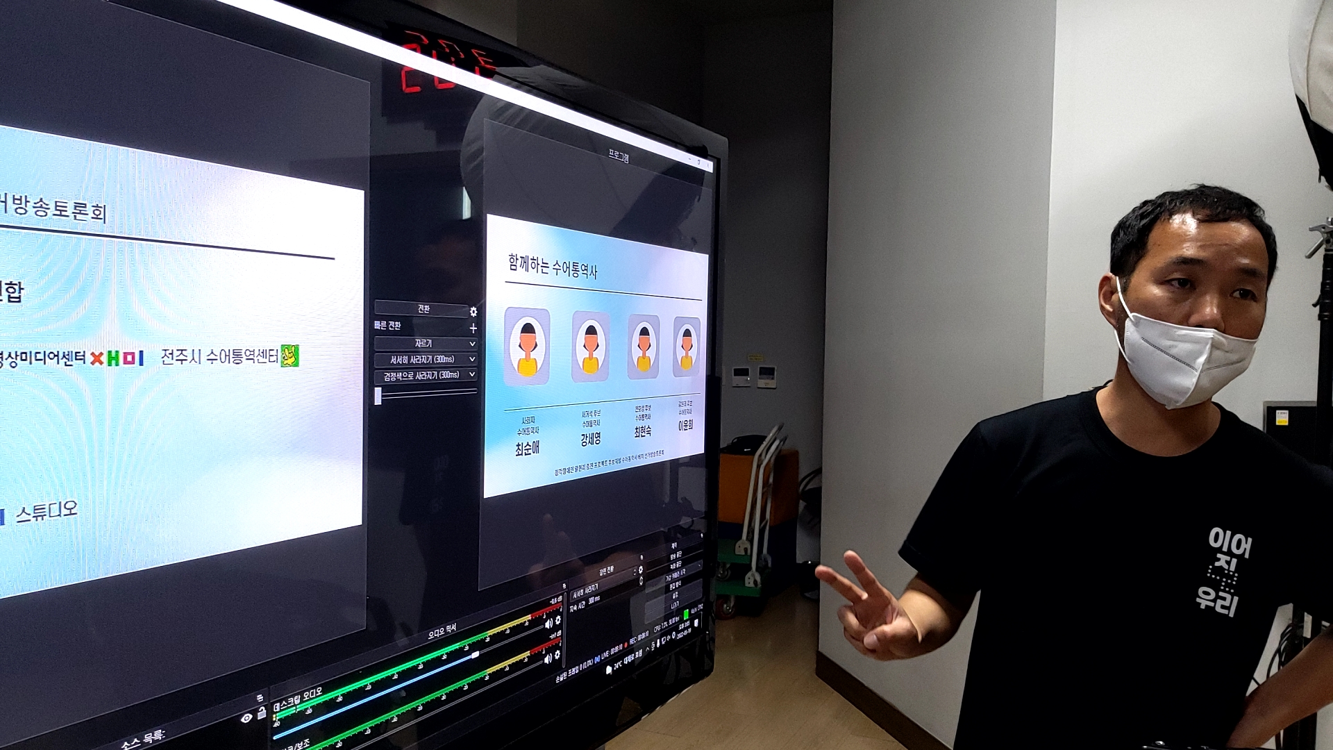 이번 프로젝트는 방송사에서 진행하는 법정 토론회 두 편(도지사, 교육감)을 다음날 유튜브를 통해 수어 통역사를 후보자별로 배치한 형태로 재가공-생중계하는 방식입니다.