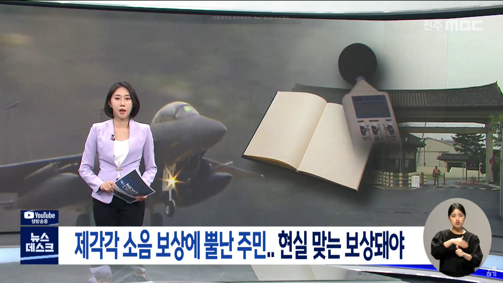 KBS전주총국은 보상 기준이 민간항공기보다 높은 점도 형평성에 어긋나 문제라고 지적했습니다. 민간항공기는 75웨클 이상의 소음이 보상 기준이지만 군용항공기는 80웨클 이상의 소음부터 보상 기준이 됩니다.