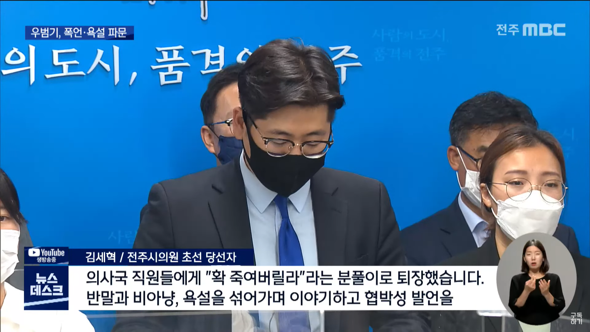 [YTN] 전주시장 당선인 "확 죽여버릴라" 막말 파문...'페이퍼 사과' 비판도(6/24, 김민성)