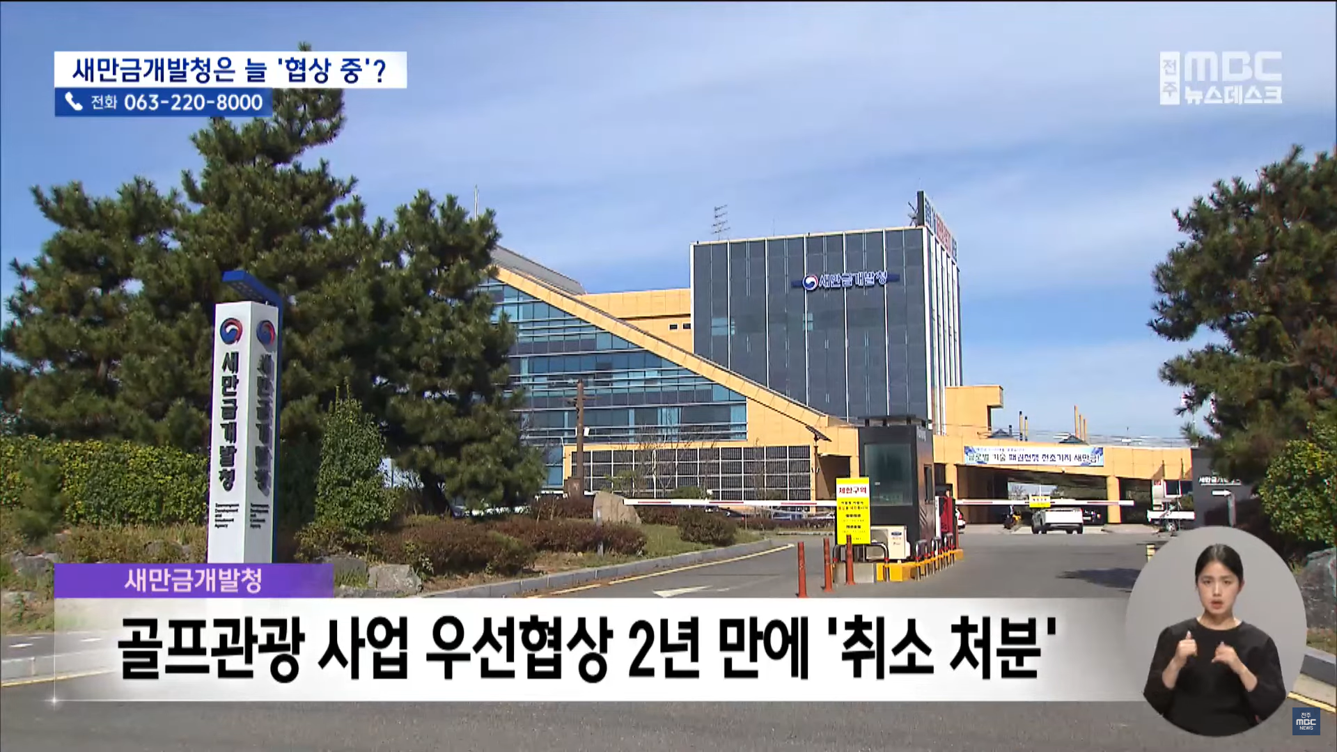 전주MBC는 정부는 우선협상지침에 따라 협상 기간을 3개월로 정했지만 새만금개발청의 우선협상자 선정 공모지침을 보면 협상 유효기한에 대한 언급 자체가 없다며, 업체 선정 이후 2년이란 시간을 허비해 업체 봐주기가 아니었냐고 새만금개발청을 비판했습니다. 이외에도 백지화되거나 무기한 협상 중인 대규모 개발사업이 3건이라고 지적했습니다. 또 우선협상 기한 문제로 첨단복합단지 조성과 관련해서는 소송을 이어가고 있는 것으로 드러났습니다.