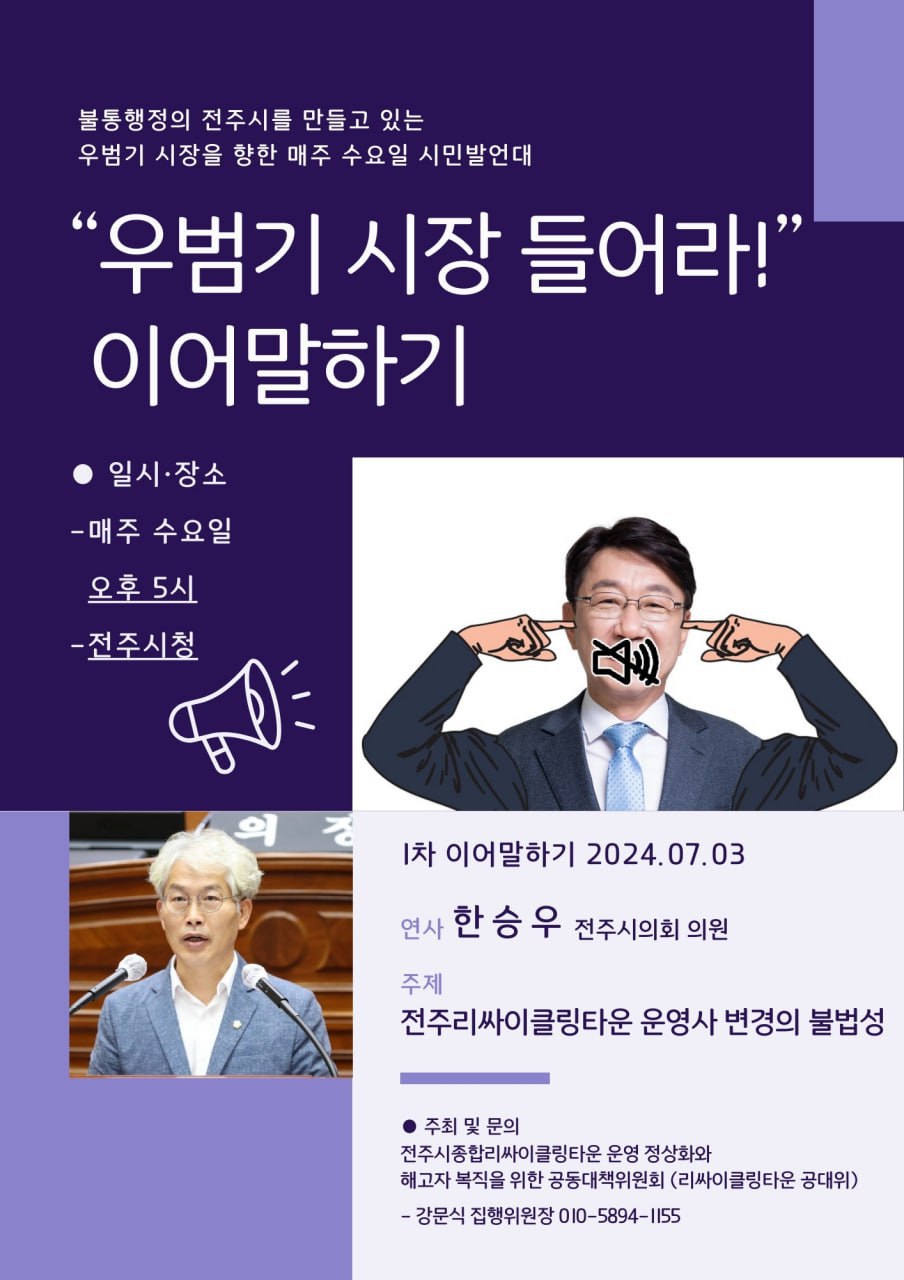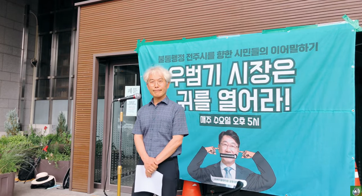 불통 행정의 전주시를 만들고 있는 전주시장 우범기를 향해 매주 수요일 시민발언대가 진행됩니다.