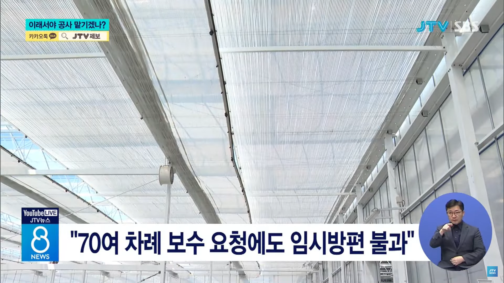JTV전주방송은 청년 농업인들의 문제 제기 기자회견 하루 전인 8월 20일 첫 보도를 시작해 피해 상황과 농어촌공사, 김제시, 전라북도 등 관련 기관의 책임 떠넘기기 문제 등을 집중적으로 보도했습니다. 또 비슷한 예산과 설계로 지어진 다른 지역의 스마트팜과 비교해 유독 특정 시공사가 시공한 김제의 스마트팜에서만 하자 문제가 크게 발생했다고 비판하면서 국정감사가 예고되어 있다고 보도했습니다.