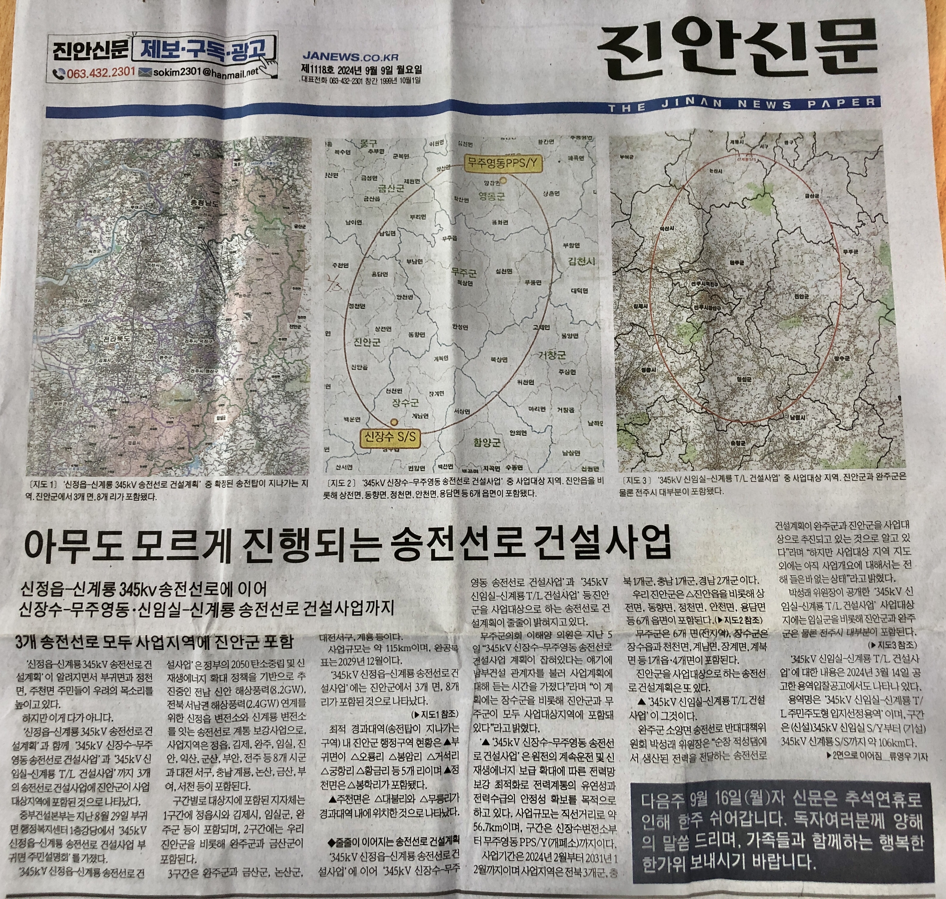 1. 345kV 송전선로, 부귀·정천·주천 지나가나?(9/2, 1면, 류영우 취재기자)