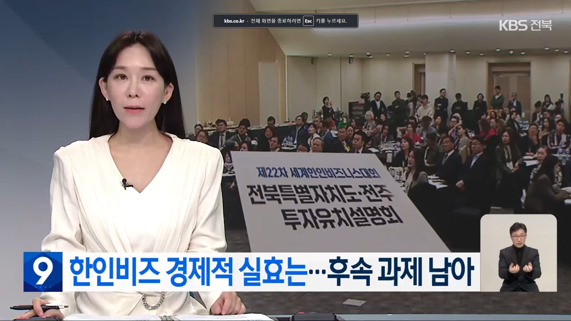10월 22일부터 24일까지 사흘동안 전북대학교에서 진행된 제22회 한인비즈니스대회가 끝났습니다. 전북 지역 언론들은 지난 대회와 비교해 눈부신 성과를 거뒀다면서 긍정적인 평가를 이어가고 있는데요. 해외 바이어와의 상담이 실제 수출 계약으로 이뤄질 수 있도록 후속 대처가 중요하다는 지적이 나옵니다.