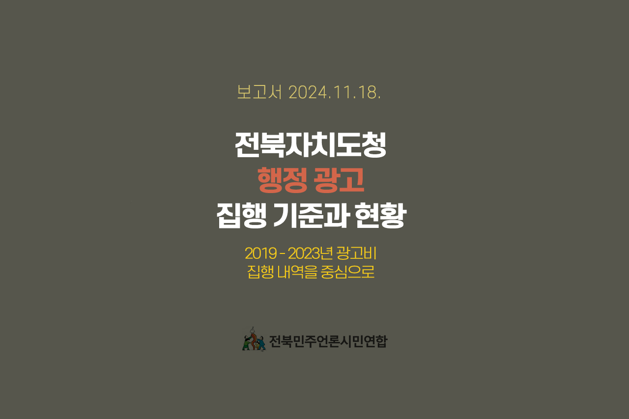 | 전북민언련 홍보예산보고서) 전북자치도청 대변인실의 행정광고 집행 계획은 적절한가? (0) | 2024.11.20 |