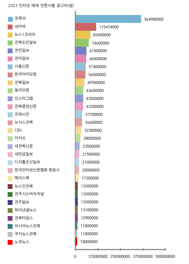1. 전북자치도청 2023년 77억 광고비 지출, 2019년보다 24억 증가