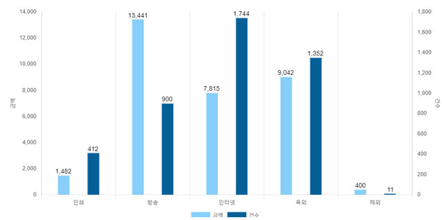 | 연도 | 구분 | 인쇄 | 방송 | 인터넷 | 옥외 | 해외 | 합계 |
