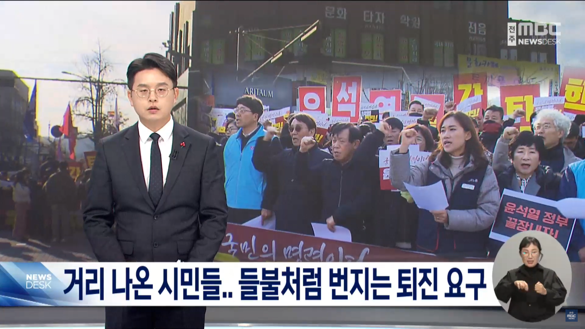 전주MBC는 첫 꼭지에서 윤석열퇴진운동본부에서 주최한 집회에서 제기된 문제제기, 반헌법적, 반민주적 계엄령 선포, 민주주의 훼손을 언급하며 시민들의 목소리를 다뤘고 세 번째 꼭지에서는 <“내란 가능성, 5공화국 연상” 계엄과 포고령에 시민사회 ‘분노’> 기사를 통해 전북 각계 성명에서 나온 규탄의 목소리를 중요하게 언급했습니다.