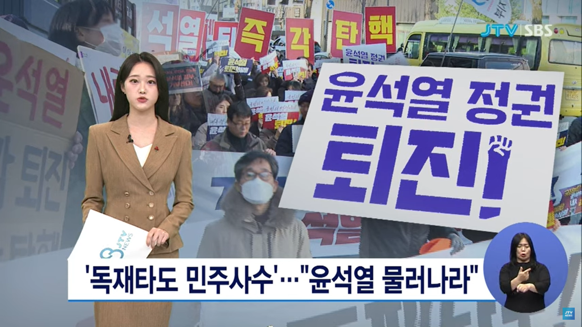 JTV 또한 첫 뉴스로 “계엄 선포가 불법적이었다며 입을 모아 윤석열 대통령의 퇴진을 촉구”했다는 집회 내용을 비중 있게 다뤘습니다.