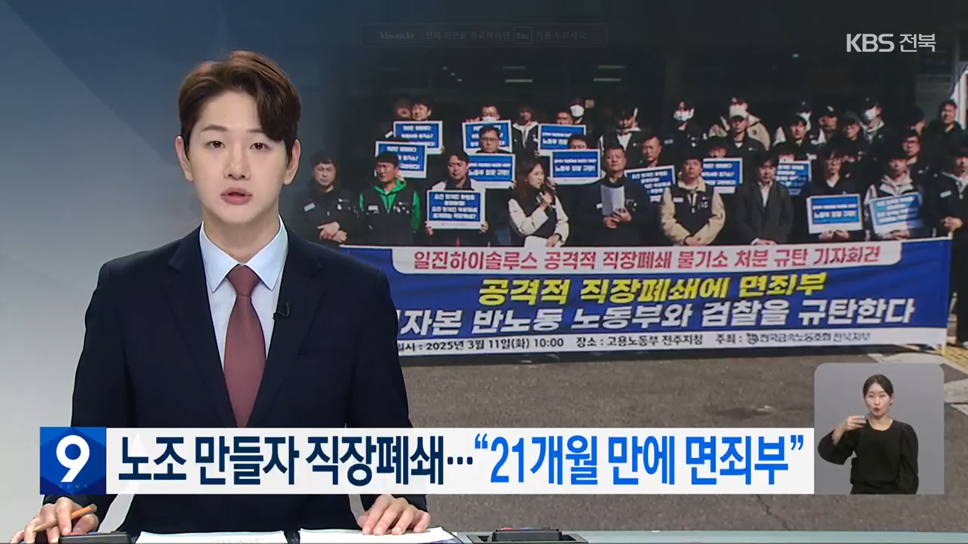 [KBS전주총국] 노조 만들자 직장폐쇄... “21개월 만에 면죄부”(3/11, 안승길)