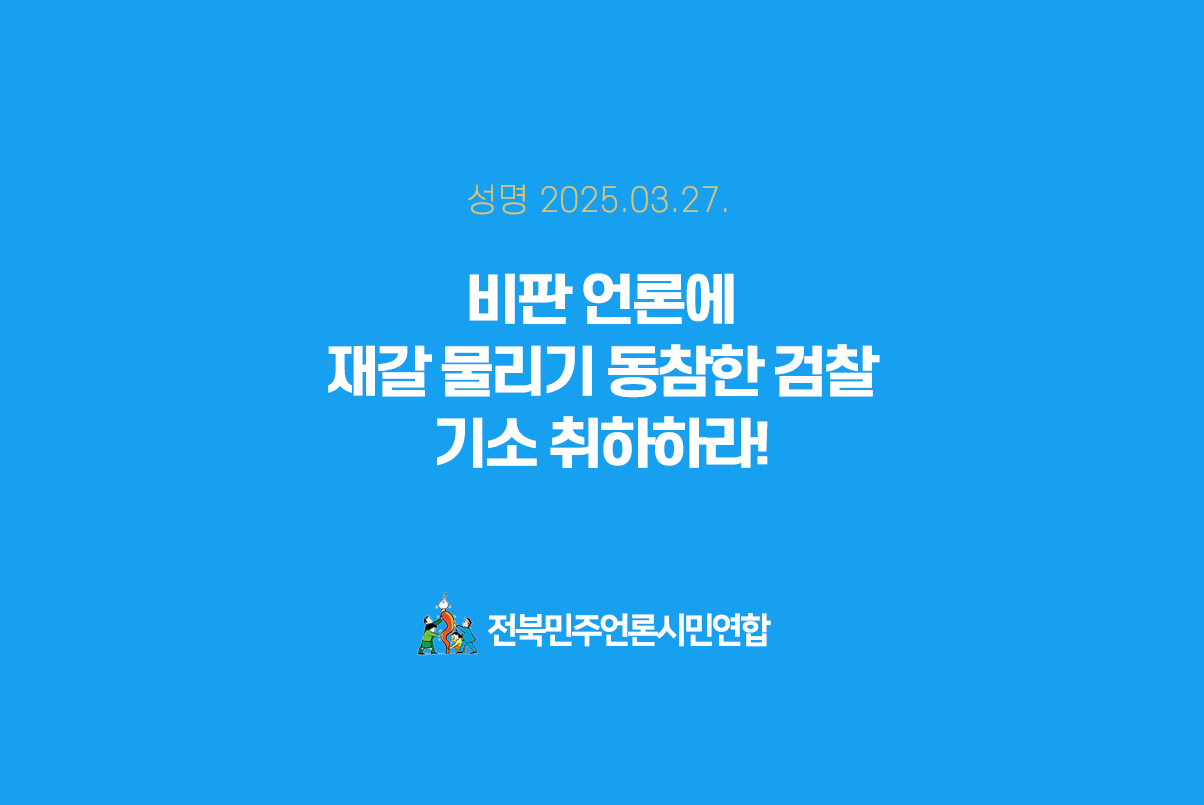 [성명] 비판 언론에 재갈 물리기 동참한 검찰, 기소 취하하라!