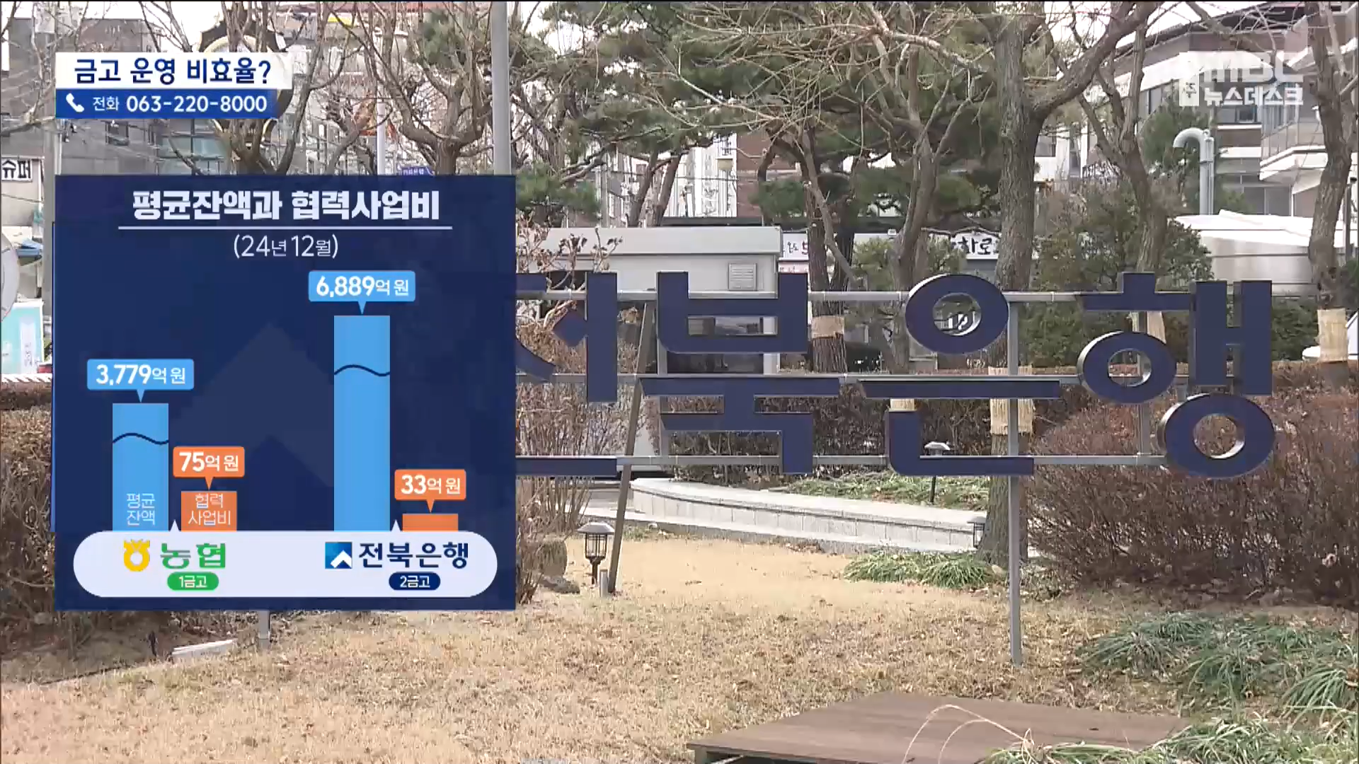 또 1금고와 2금고의 평균 잔액 편차가 크고 형평성 문제도 있다고 지적했습니다. 2024년 12월 31일 기준 1금고 평균 잔액은 약 3,777억 원, 2금고 평균 잔액은 6,889억 원이지만 협력사업비는 1금고인 농협이 75억 원, 2금고인 전북은행이 33억 원을 부담하고 있어 불합리하다는 겁니다.