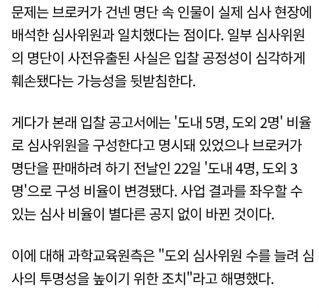 #입찰 제안서 평가 앞두고 브로커 통한 심사위원 명단 유출