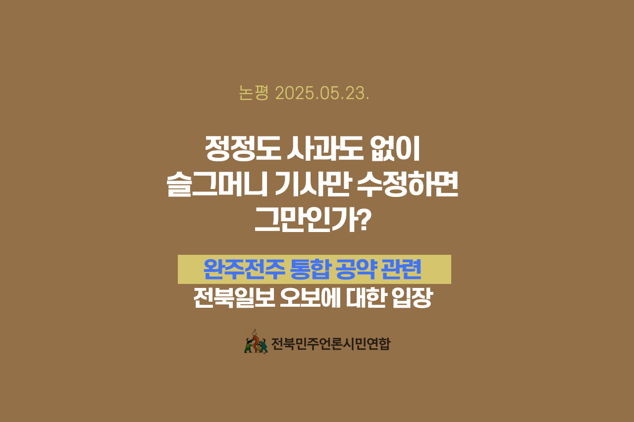 우리는 이와 같은 전북일보의 무책임한 태도에 참담함을 느낀다. 취재와 편집 과정에서 의도치 않게 오보가 나올 수 있다. 그러나 더욱 중요한 것은 잘못된 정보를 바로잡는 언론사의 대응이다. 언론의 생명은 공신력임에도 불구하고 오보를 수정하는 전북일보의 후속 대처는 무책임하기 그지없다.