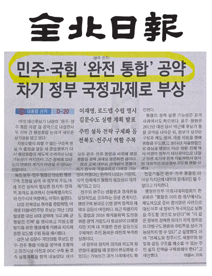 - 완주전주 통합 공약 관련 전북일보 오보에 대한 입장 -