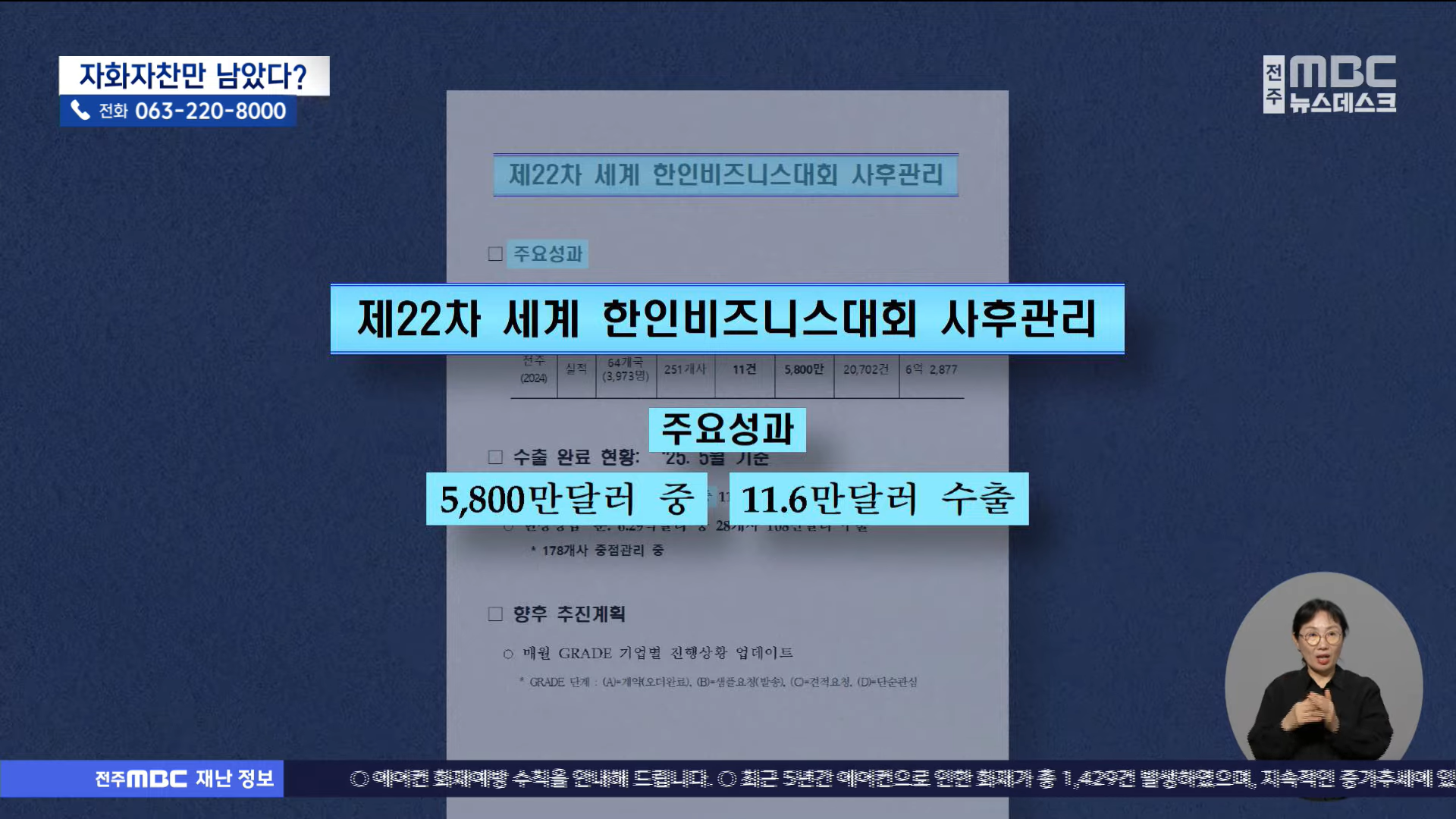 지난해 10월 전북대학교에서 진행된 제22회 한인비즈니스대회, 지역 언론들의 긍정적 평가와 함께 성과에 대한 전북자치도의 홍보도 이어졌는데요. 지난 2월 전북자치도의회에서 후속 조치가 제대로 안 되고 있다는 지적이 나온데 이어 현재까지 계약 규모에 비해 성과가 미흡한 것으로 나타났습니다.