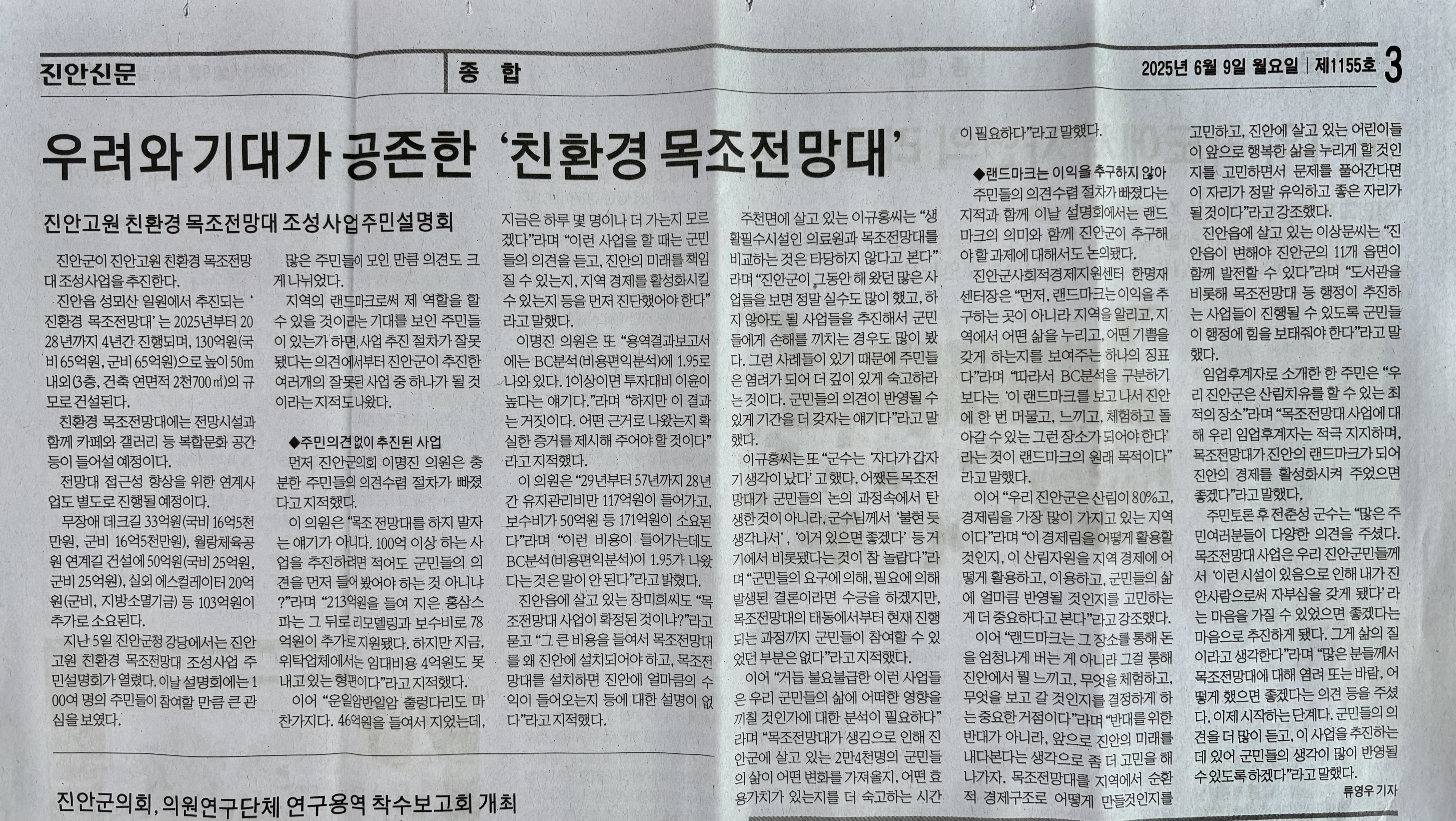 [진안신문] ‘진안고원 친환경 목조전망대’, 다양한 의견 나눠(6/16, 2면, 정도영)