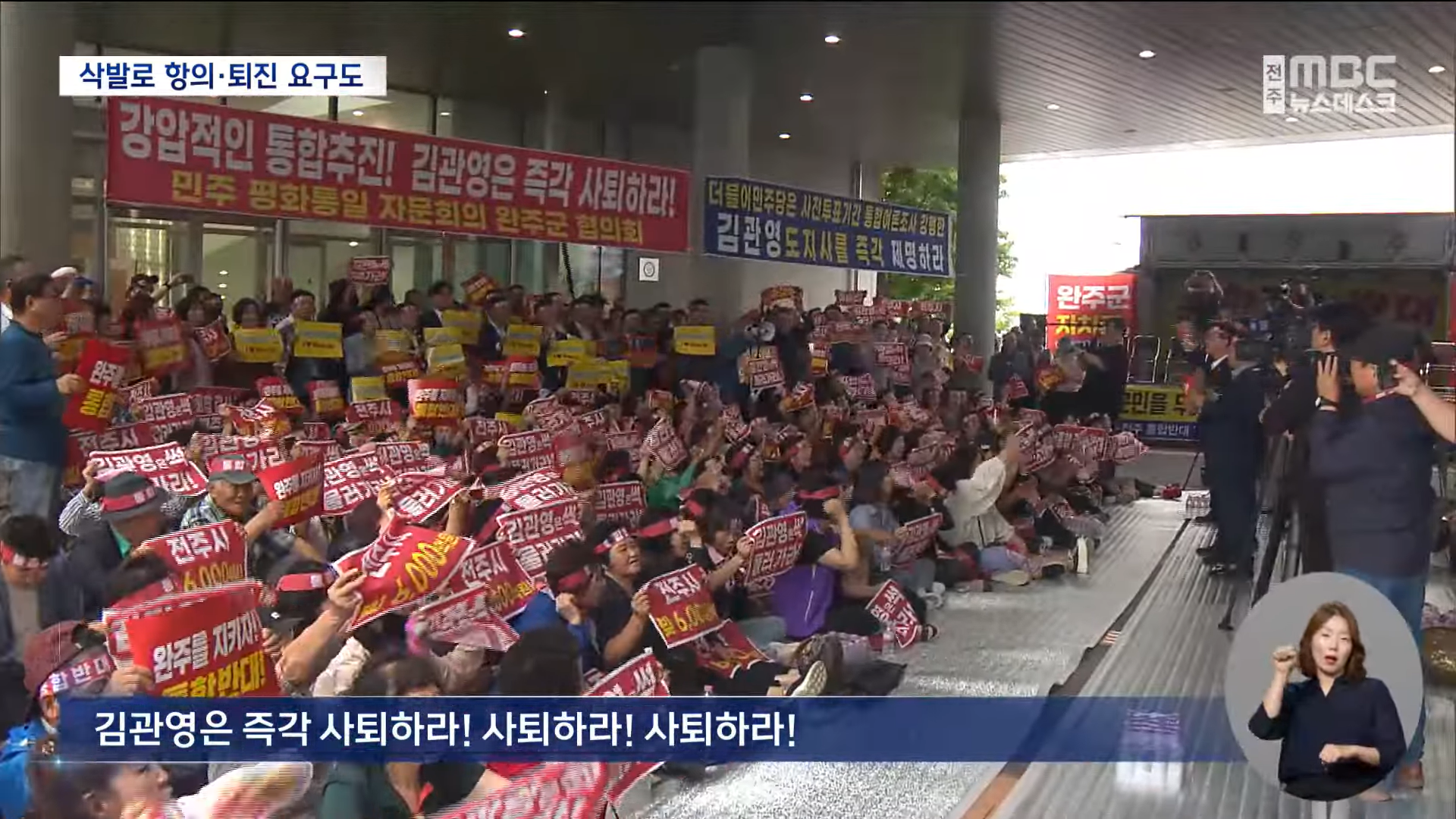 [전주MBC] 통합 추진에 삭발로 항의‧지사 퇴진 요구도.. 갈등 격화(6/25, 이주연)