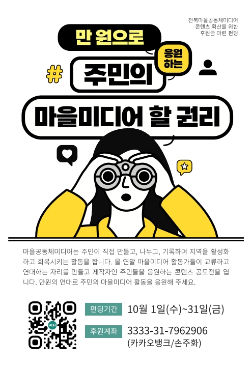 | 2025 전북마을공동체미디어 후원 펀딩 결과 보고 (0) | 2025.11.03 |