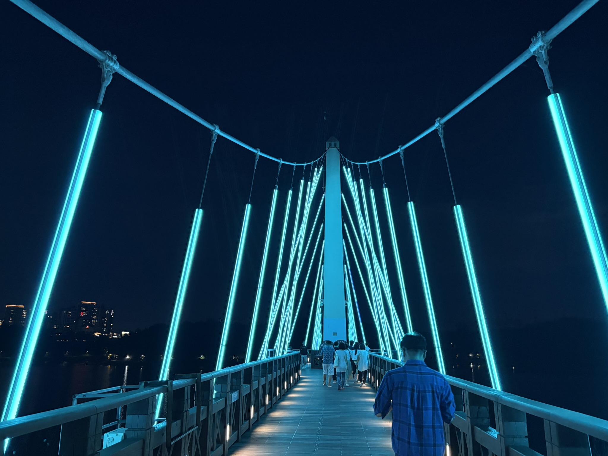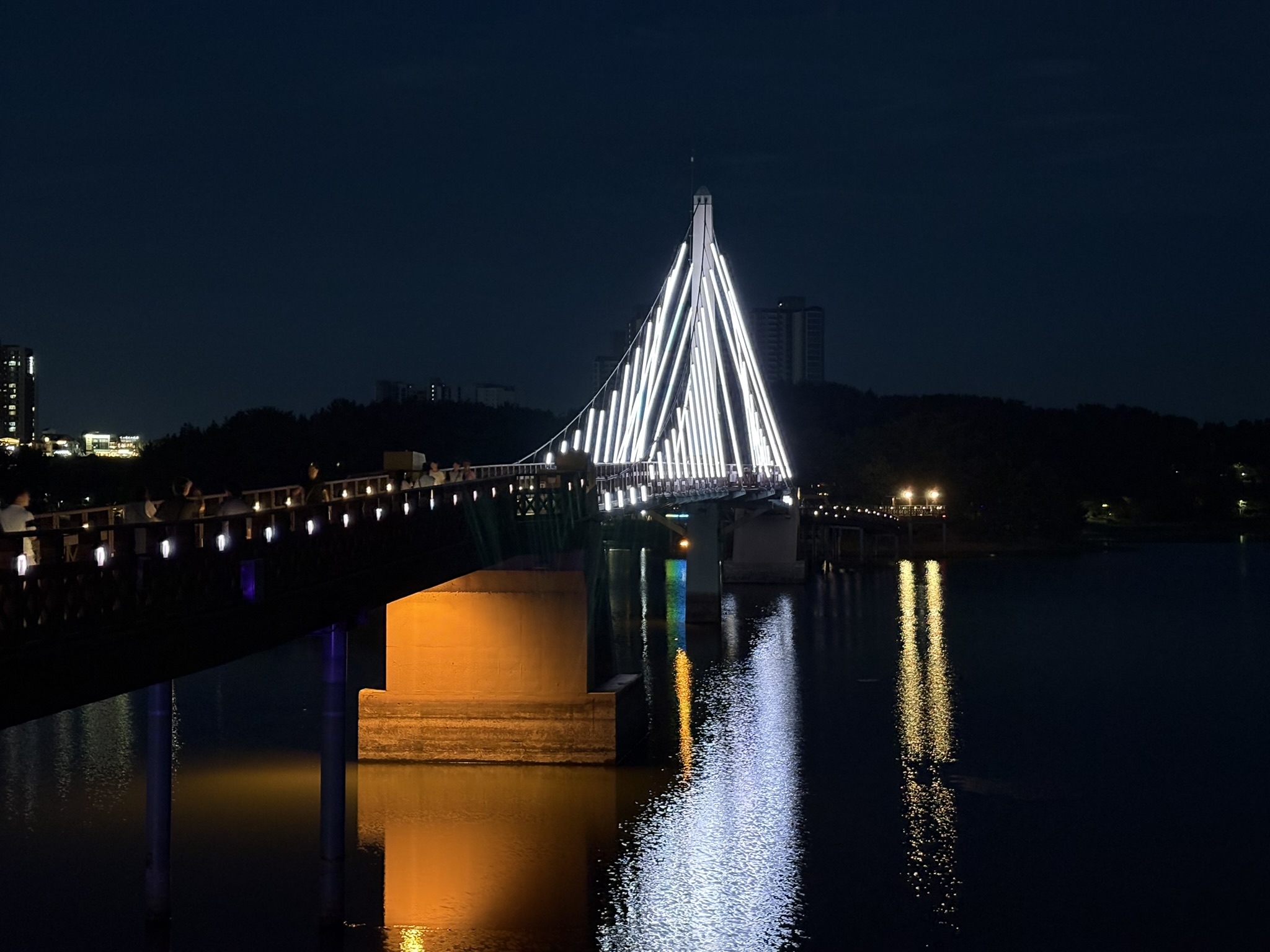 식사 후에는 다같이 은파호수공원을 둘러보며 야경을 감상했습니다. 화려하게 변하는 다리 조명과 함께 중간에 있는 무대에서 진행된 공연까지 너무 좋았는데요. 회원들 모두 사진 삼매경에 빠졌습니다.
