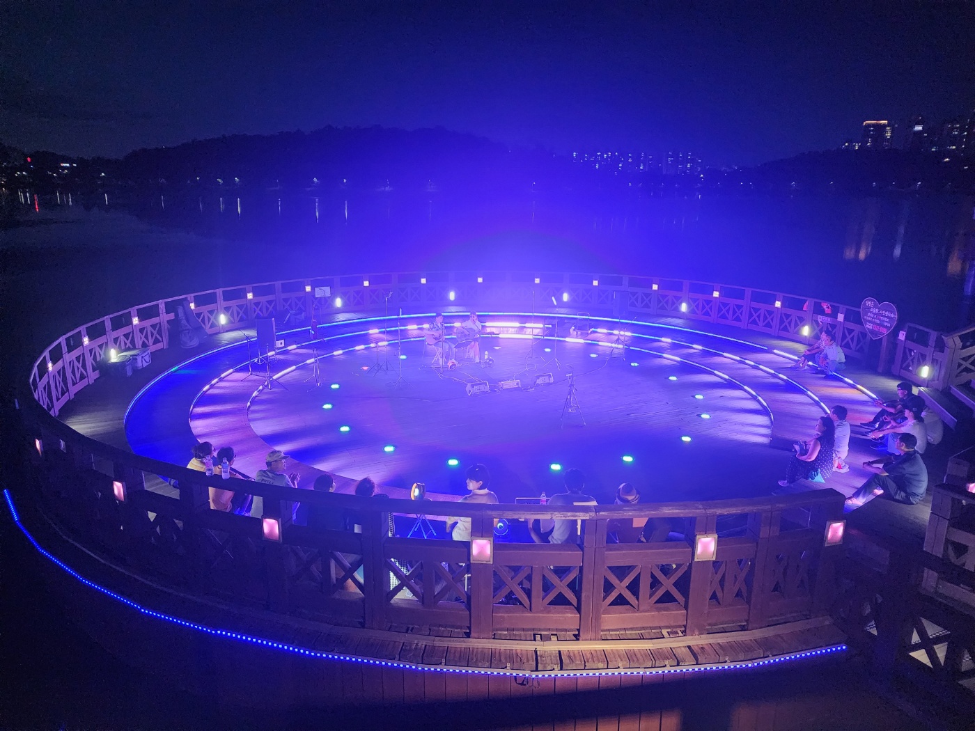 식사 후에는 다같이 은파호수공원을 둘러보며 야경을 감상했습니다. 화려하게 변하는 다리 조명과 함께 중간에 있는 무대에서 진행된 공연까지 너무 좋았는데요. 회원들 모두 사진 삼매경에 빠졌습니다.