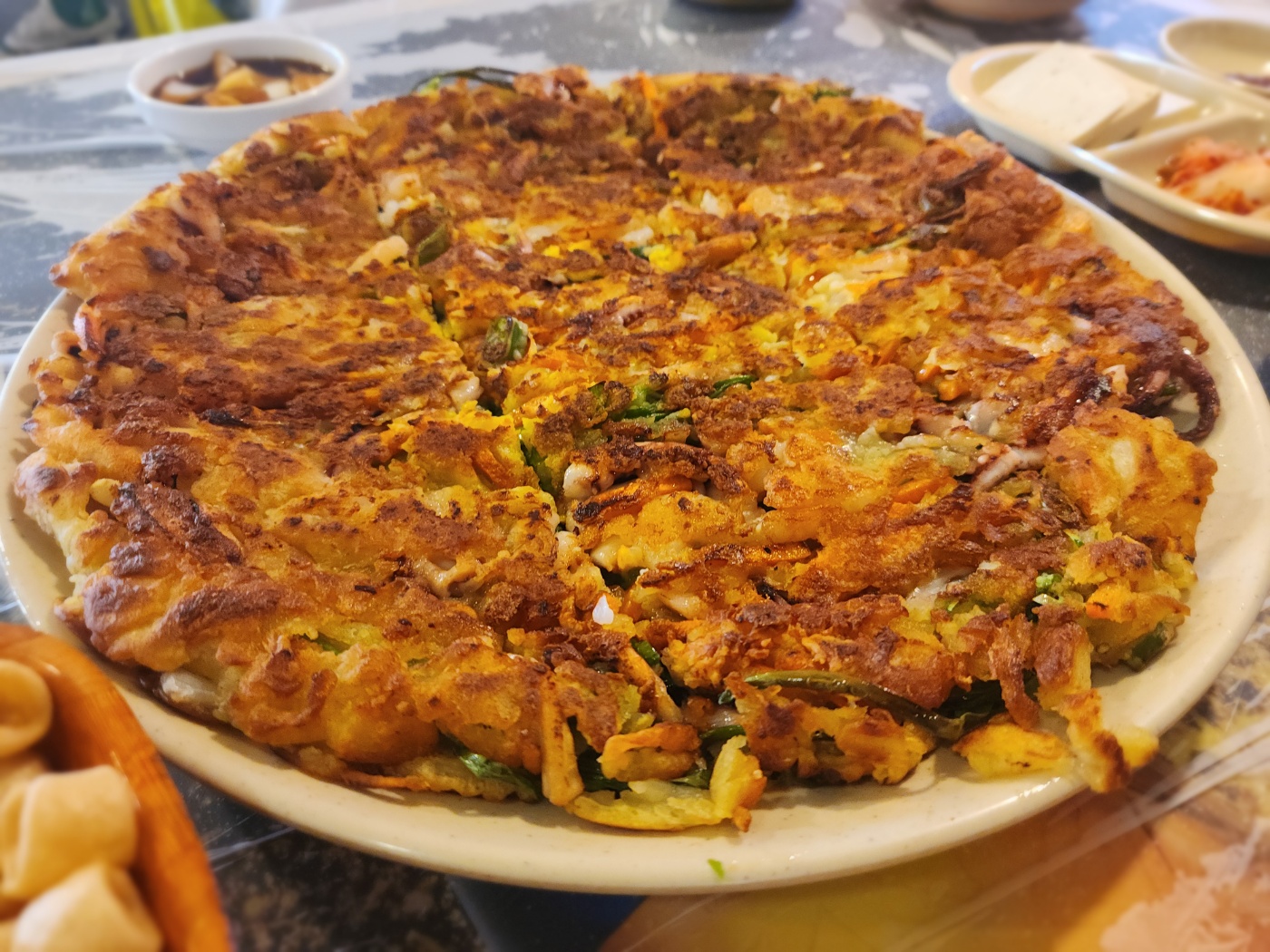 저녁 식사는 군산 은파호수유원지에 있는 파전집에서 먹었습니다. 점점 늘어나는 손님들을 보면서, 일찍 오길 다행이라는 생각이 들었습니다. 파전이 너무 바삭하고 맛있었어요.