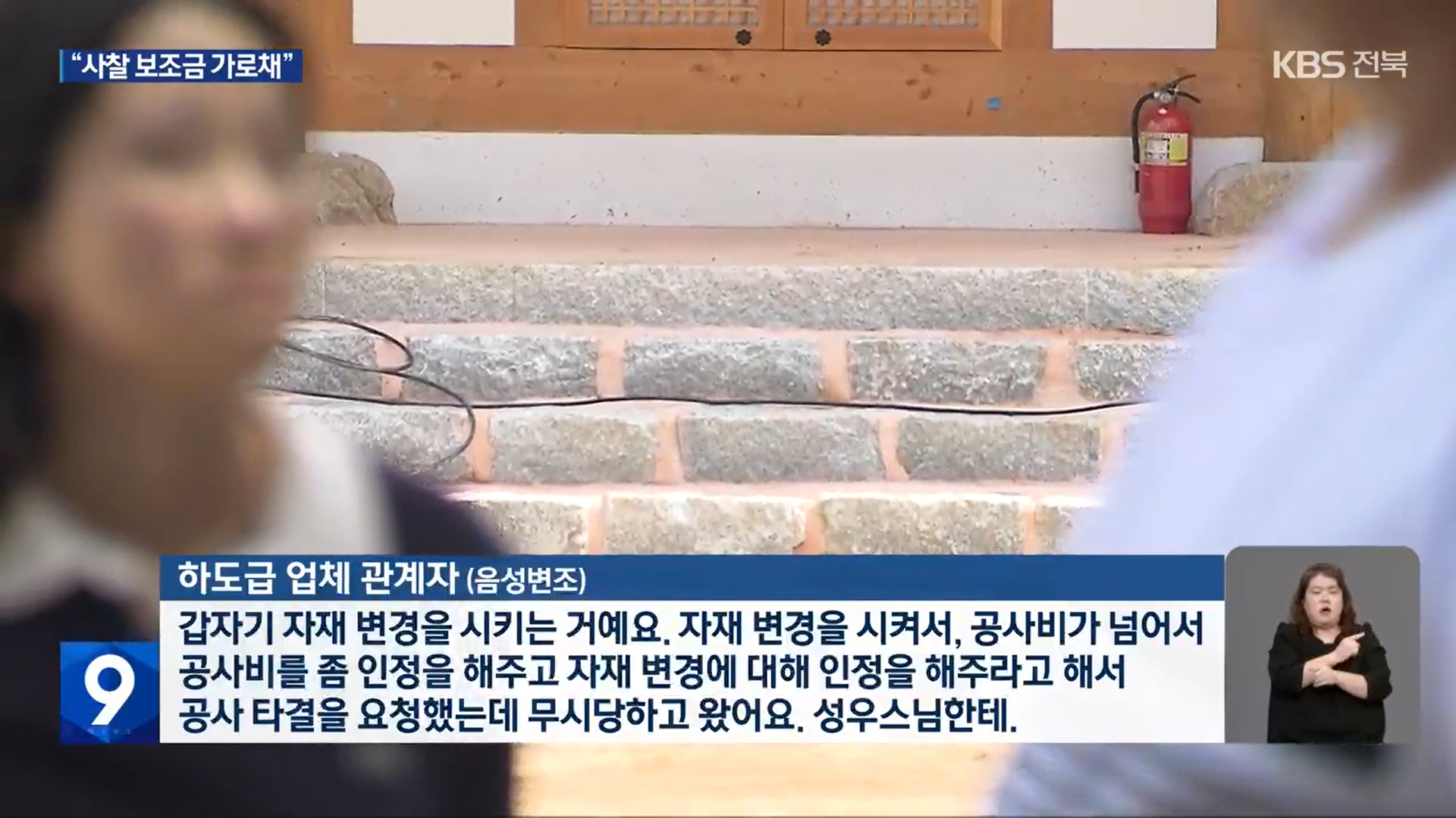4. “성우스님 실소유 의혹 업체, 보조금 ‘꿀꺽’”(8/14, 김현주 취재기자 / 한문현 영상기자)