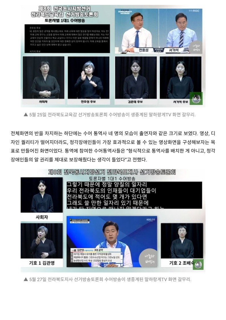 2년에 걸쳐 언론계와 선거방송토론위원회에 청각장애인 수어통역 확대 문제를 요구했었습니다. 당시 돌아온 대답은 당사자들은 가만히 있는데 왜 민언련에서 이러냐? 라는 질책이였죠. 매우 속상했고 그렇다면 모델 사례를 만들고 당사자들의 이야기를 끌어내겠다고 마음 먹고 시작한 게 '#모두를위한선거방송토론회'였습니다. 비장애인과 장애인 모두를 포괄하는 미디어 이용 문제를 선거방송토론회부터 시작해 보자는 취지였죠.