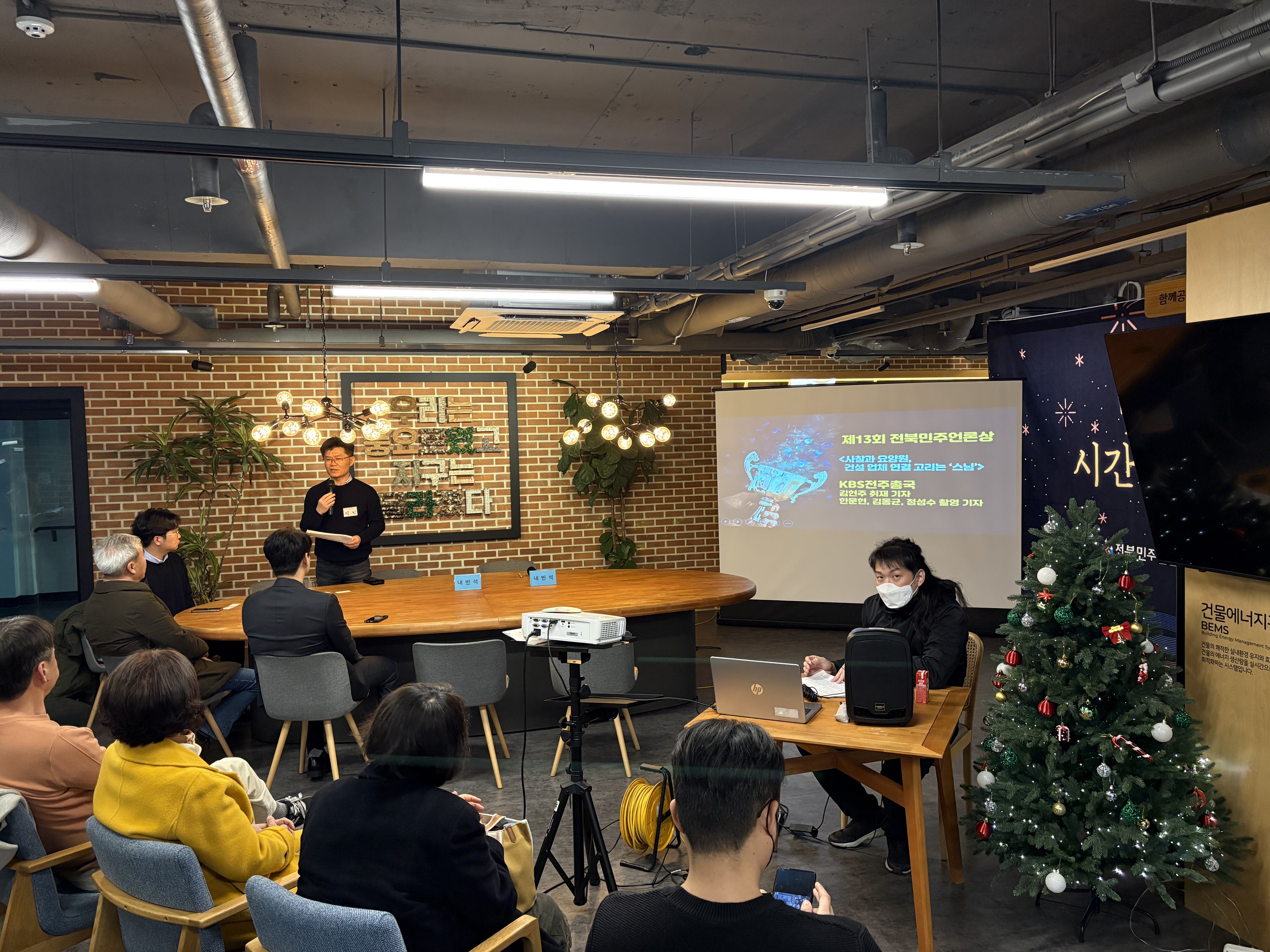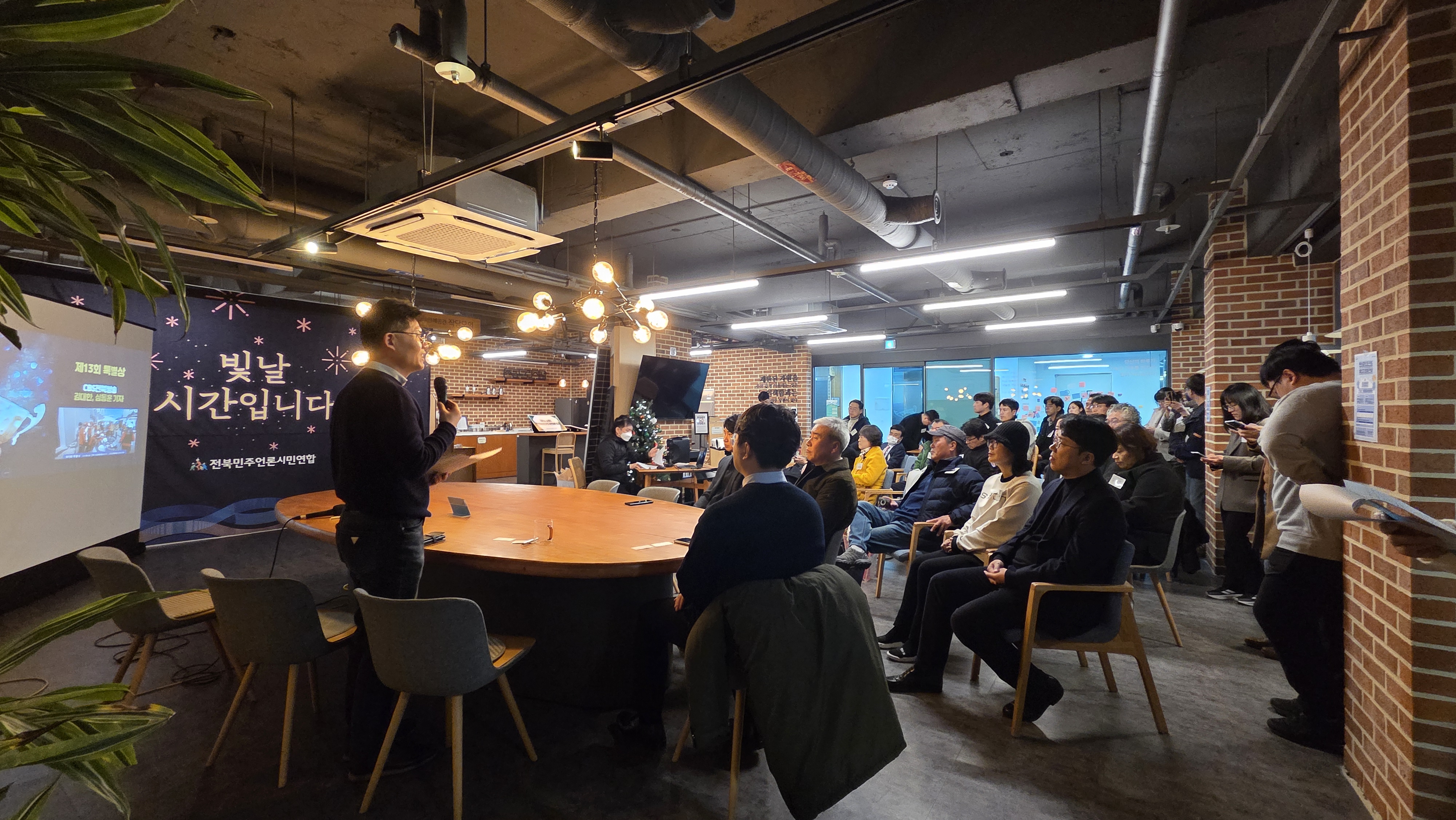 2025년 12월 19일(금) 저녁, 전주시에너지센터에서 제13회 전북민주언론상 시상식 및 회원 시상식, 그리고 송년회가 진행되었습니다. 올해는 정무영, 박주희 회원의 사회로 행사가 진행되었습니다!