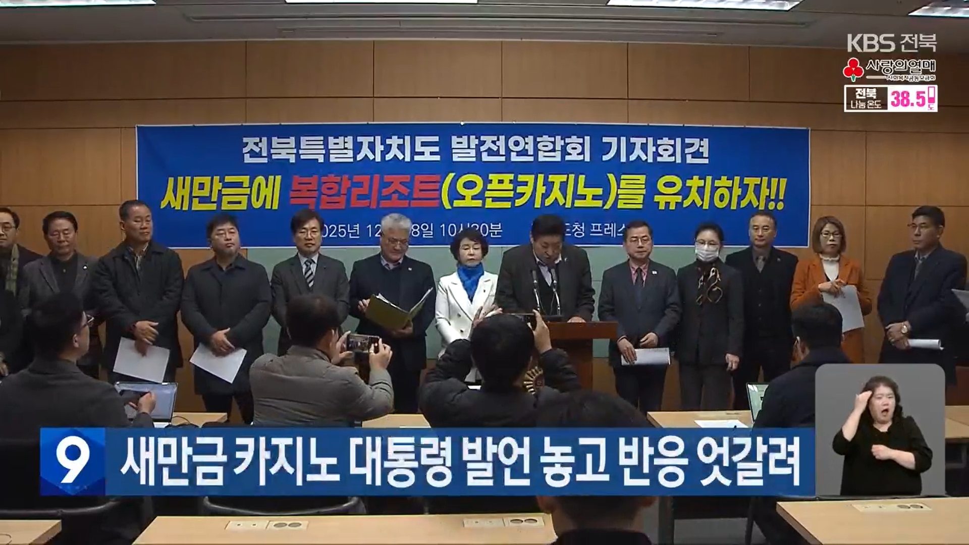 실제로 이재명 대통령의 발언 이후 이틀 뒤인 12월 18일 전북특별자치도발전연합회가 기자회견을 통해 “새만금에 오픈 카지노를 포함한 복합 리조트를 유치해야 한다.”라고 주장했습니다. 나경균 새만금개발공사 사장이 글로벌 복합리조트 기업 관계자로부터 한국이 법을 개정할 경우 투자할 의사를 확인했다는 겁니다.