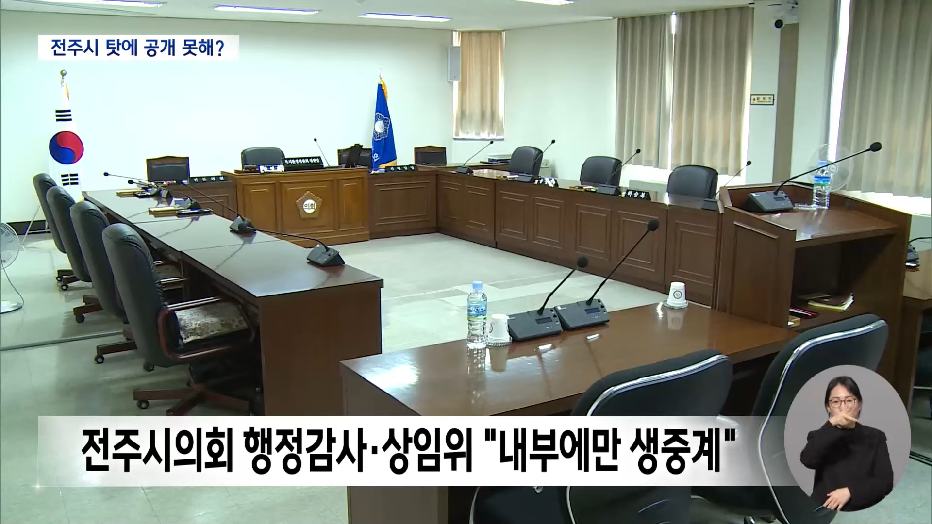 이처럼 도내 지방의회가 조금씩 생중계를 확대하고 있는 가운데 전북 최대 규모인 전주시의회는 여전히 본회의만 공개하고, 상임위원회, 특별위원회, 행정사무감사 생중계는 하지 않고 있습니다. 11월 26일 SKB전주방송은 “전주시의회는 지난해 국민권익위원회 권고 이후에도 제자리”, “시민의 알 권리를 외면하고 있다.”라고 비판했는데요. 전주시의회 관계자는 예산 문제를 호소했습니다. 생중계 시스템 구축에 10억 원에서 12억 원 정도의 예산이 필요한데, 예산을 요청했지만 재정난을 이유로 반려됐다는 겁니다.