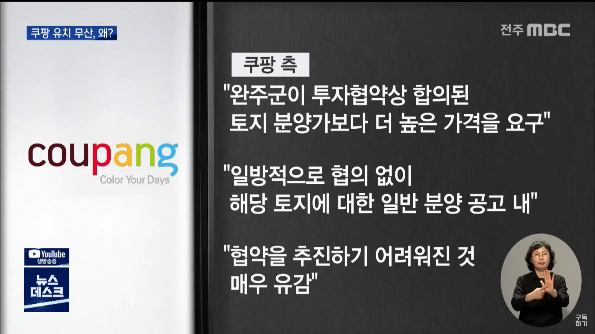 [전주MBC] 쿠팡 유치 왜 무산됐나.. 책임론 확산(7/22, 김아연)