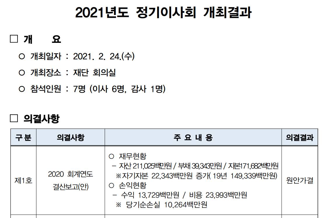 전북신용보증재단 2021년도, 2022년도 정기이사회 자료 일부 편집