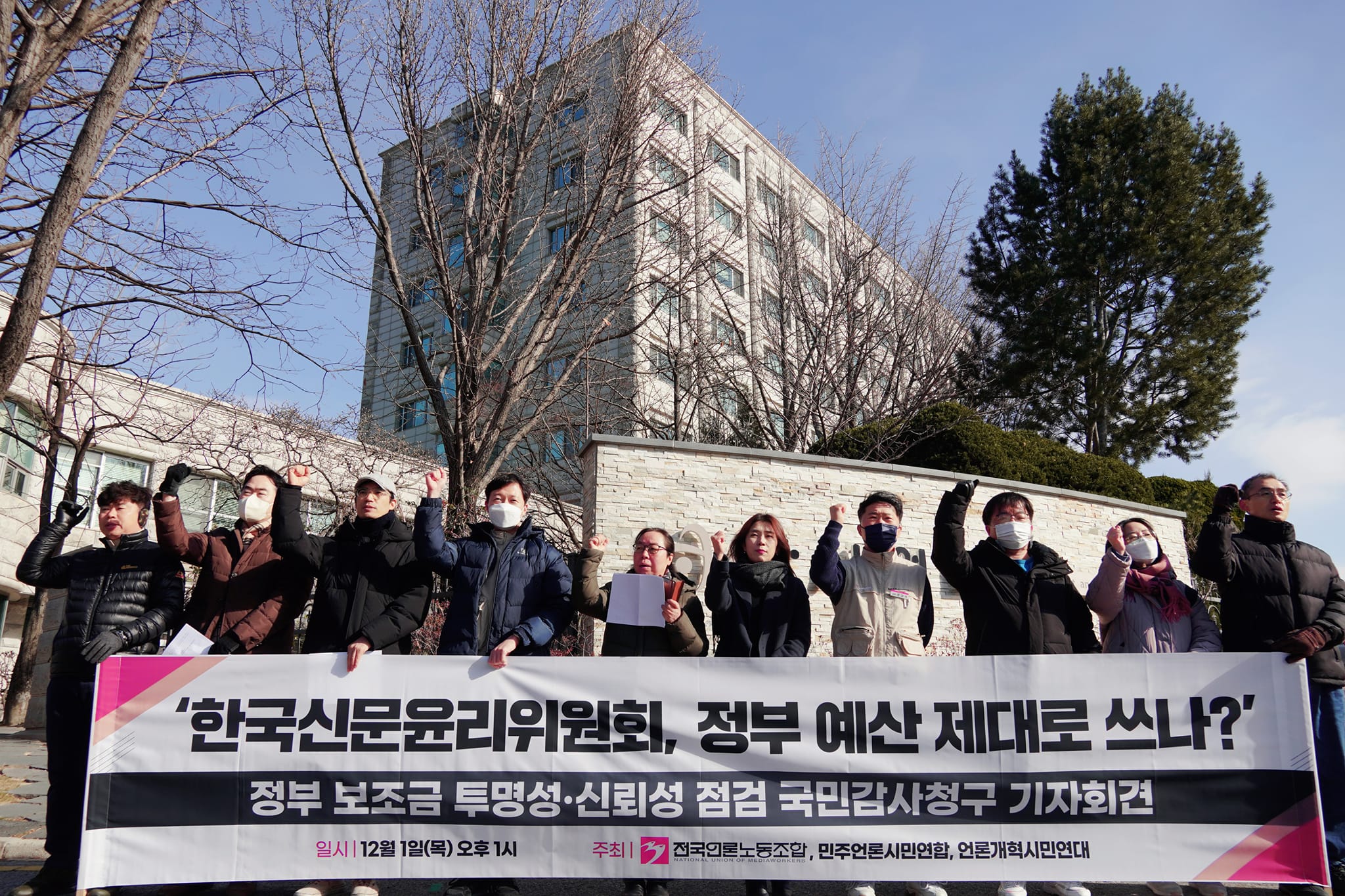 이들은 기자회견문을 통해 “언론 현업 종사자들과 시민들이 참여한 국민감사청구는 자율규제 기구인 신문윤리위에 지원되는 언론진흥기금 보조금 운용 적정성에 대한 점검 및 개선 요구를 반영한 것”이라며 “감사원은 신문윤리위가 그 용도에 맞게 언론진흥기금 보조금을 제대로 사용했는지, 서 이사장이 합리적 절차와 기준을 갖고 신문윤리 심의사업을 시행했는지 철저히 감사해 책임을 다하라”고 요구했다.
