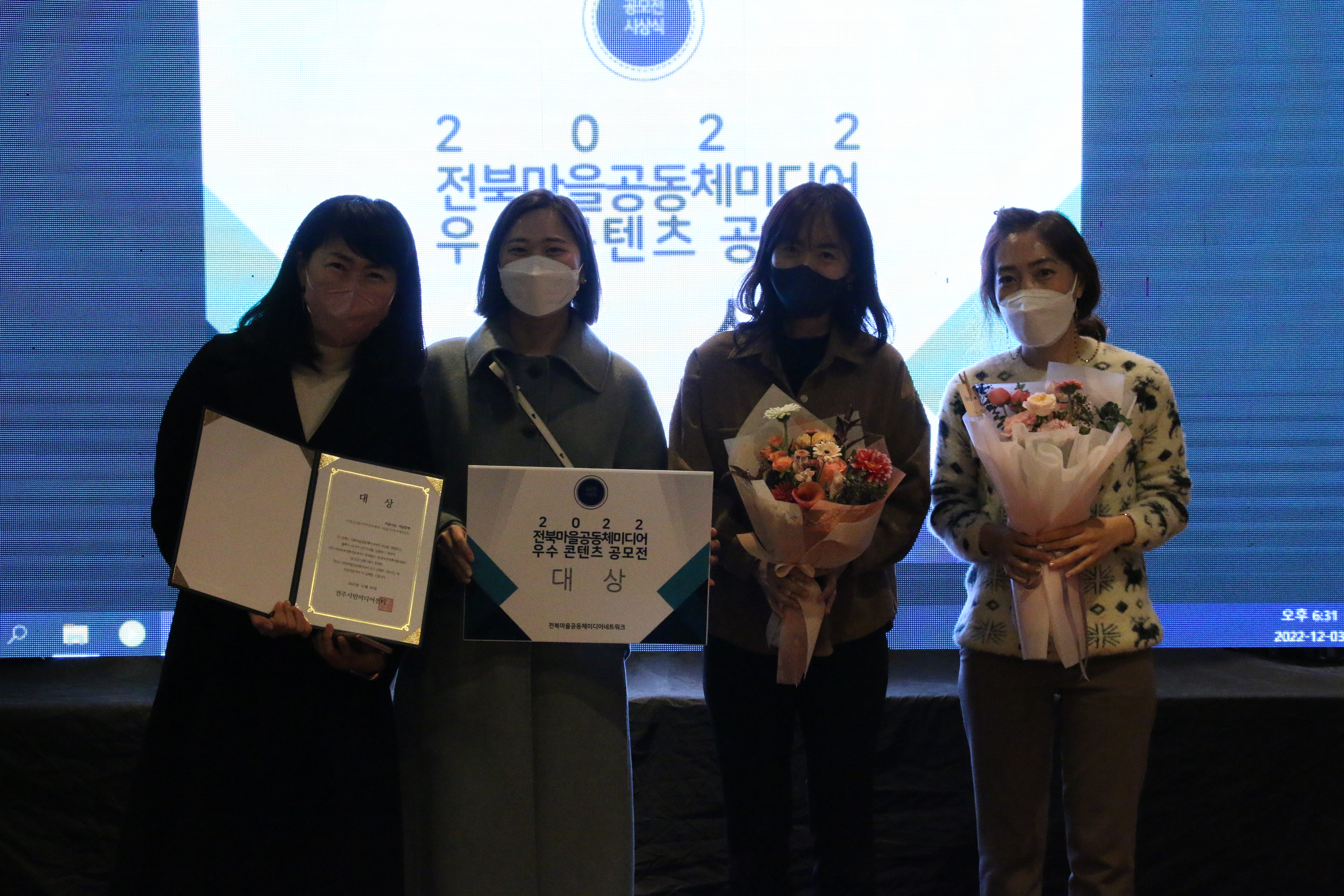 2022년 12월 3일 영화호텔 2층에서 진행된 전북마을공동체미디어 활동가의 밤은 많은 분들의 참여 속에 우수콘텐츠 시상식 및 참여 단체 소개 그리고 맛있는 식사를 진행하며 잘 마무리 되었습니다.