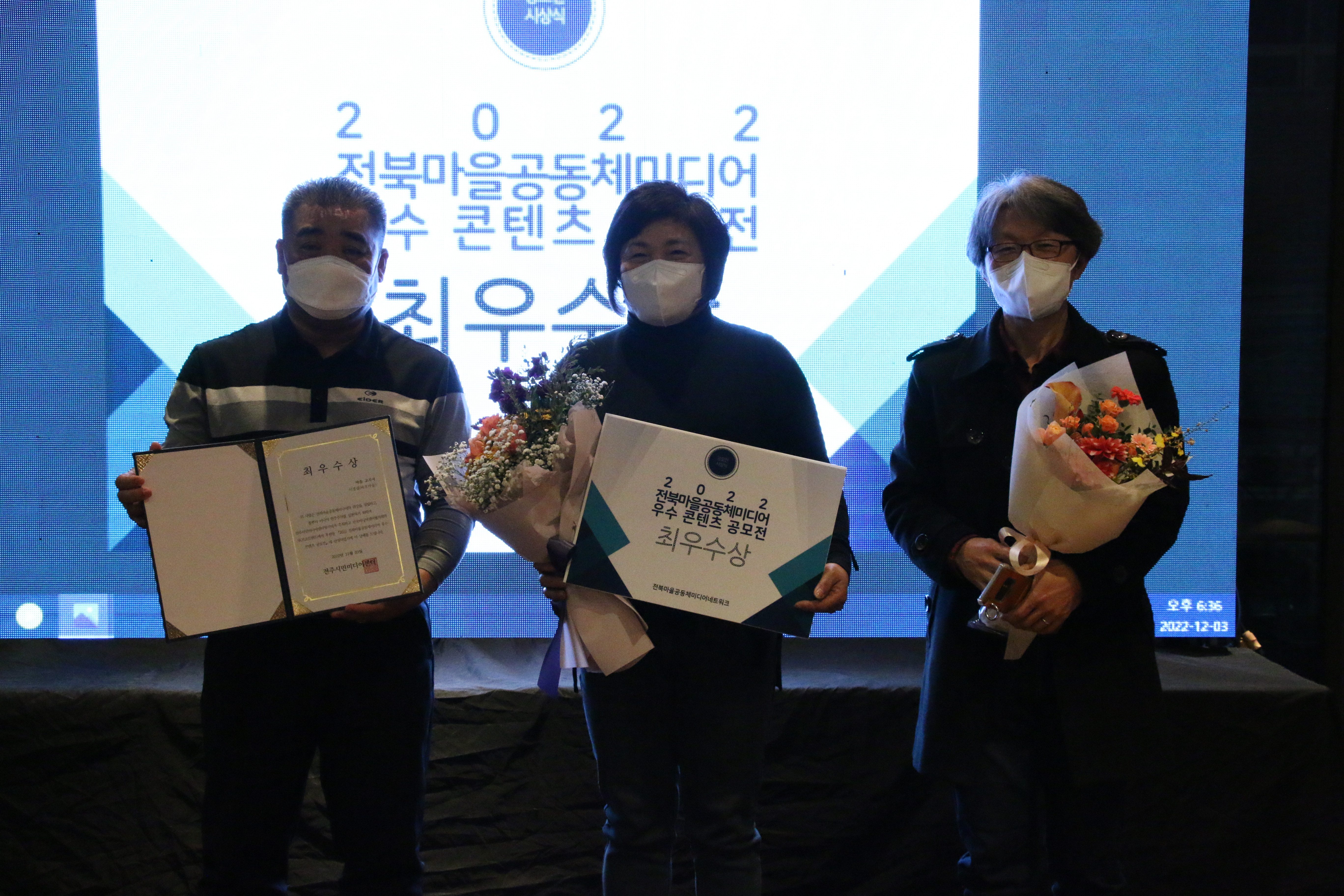 2022년 12월 3일 영화호텔 2층에서 진행된 전북마을공동체미디어 활동가의 밤은 많은 분들의 참여 속에 우수콘텐츠 시상식 및 참여 단체 소개 그리고 맛있는 식사를 진행하며 잘 마무리 되었습니다.