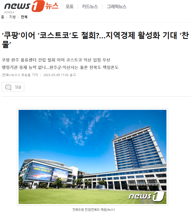오늘 자 전북의소리도 “행정이 말로만 기업 유치를 외치며 실제론 뒷짐만 지고 있는 것 아니냐는 따가운 비판의 목소리들이 나온다.”라며, 전라북도와 익산시가 ‘대체 부지 추진’이라는 애매한 입장을 나타내 지역 유통업계가 불안감을 호소한다고 비판했습니다.