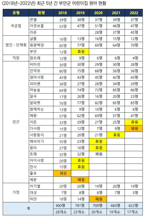 부안독립신문은 “이런 상황은 부안군만의 문제라고 볼 수는 없다. 이미 오래전부터 예견된 상황”임을 강조했습니다. 부안군뿐만 아니라 지역 소멸 위기에 놓인 각 시‧군도 실태 파악 및 보육 환경에 대한 대책 마련이 필요해 보입니다.